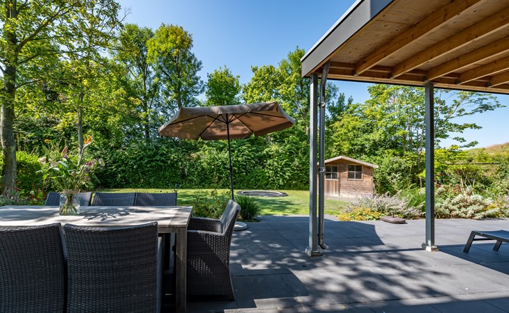 The lovely, partly covered terrace of 70 m2 is equipped with a comfortable garden set and two deck chairs. For the children there is a trampoline, which provides hours of fun! There is also a shed in the garden. What a pleasure to enjoy nature and tranquillity here. Can you hear the murmur of the sea?