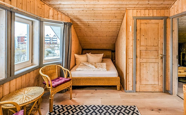 The cosy Holzhaus Wildgans offers you all the comfort you need for a relaxing holiday. The rooms are spread over two floors. Your small, personal wellness area with sauna and whirlpool is located on the ground floor. In fine weather, the partially covered terrace offers a wonderful place to relax.
