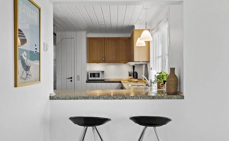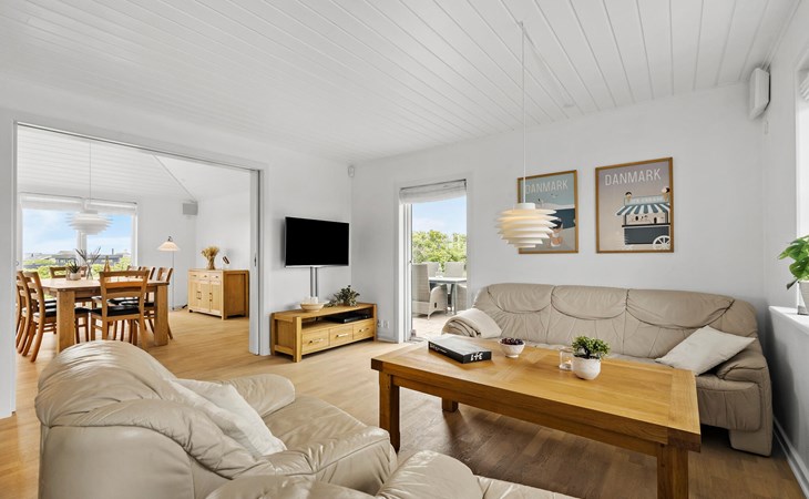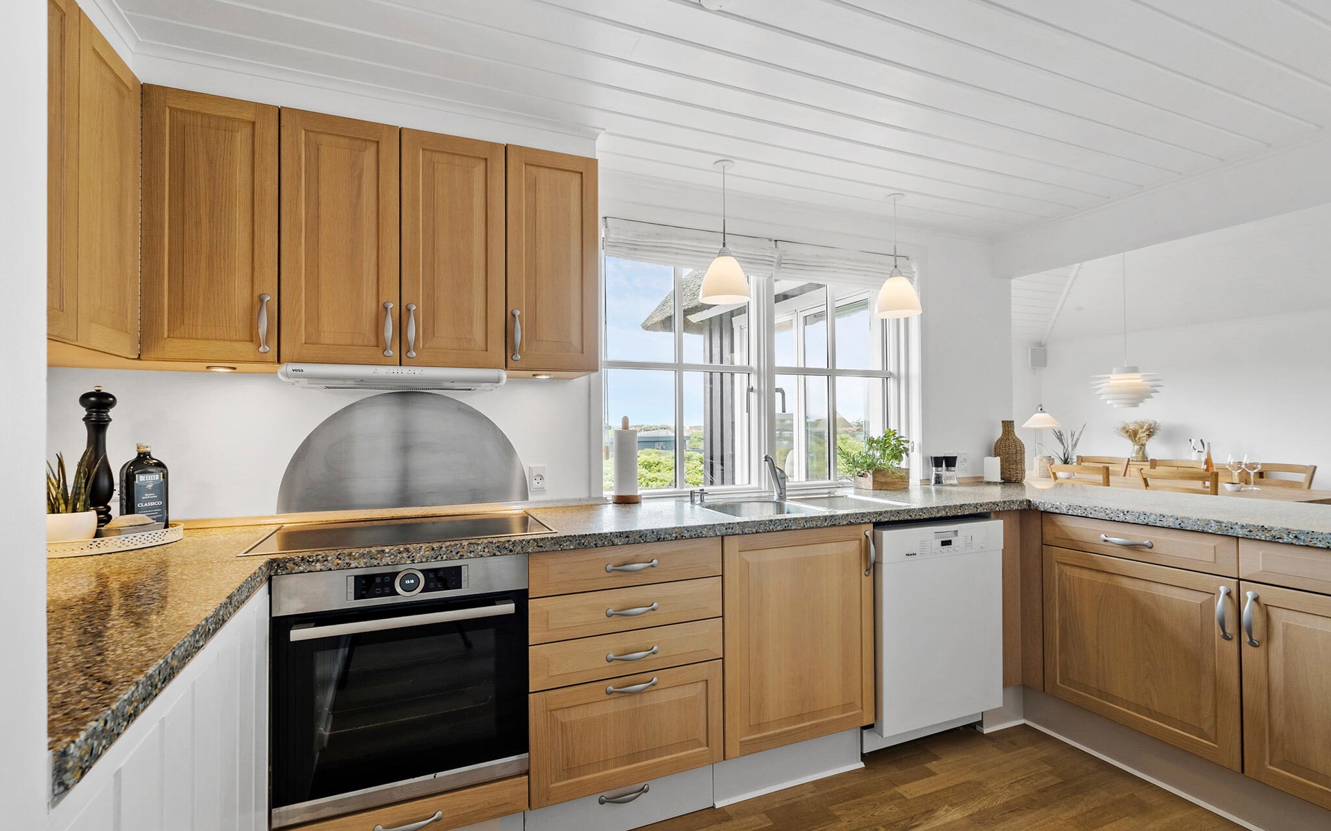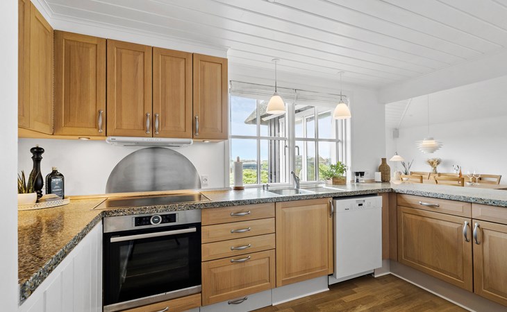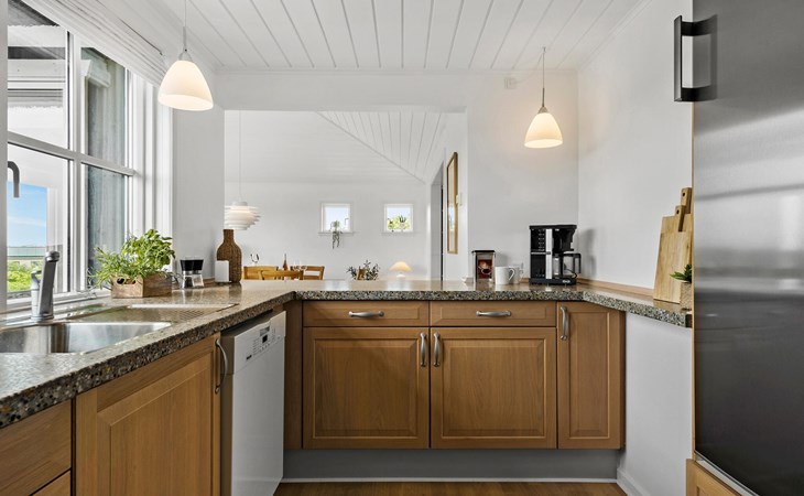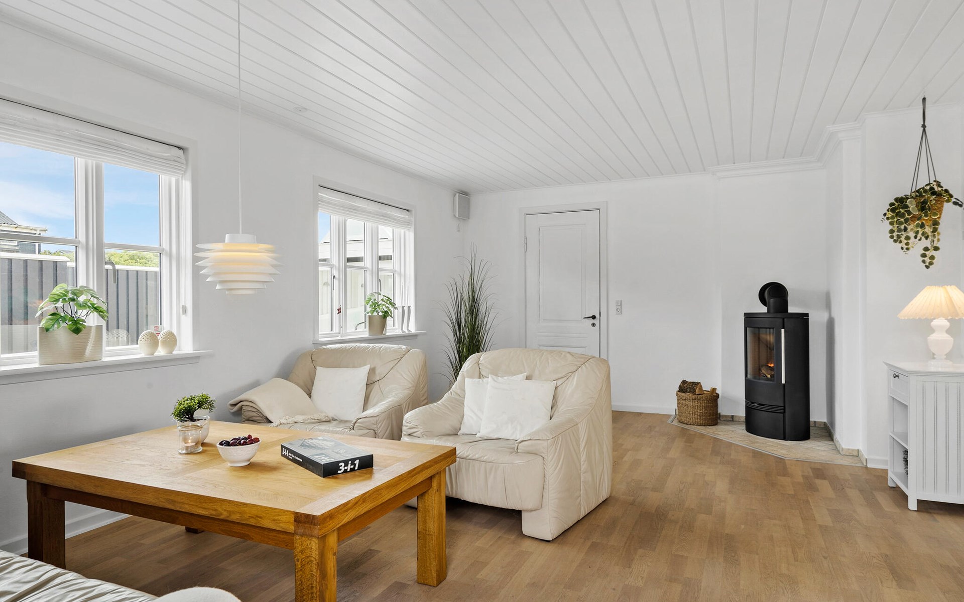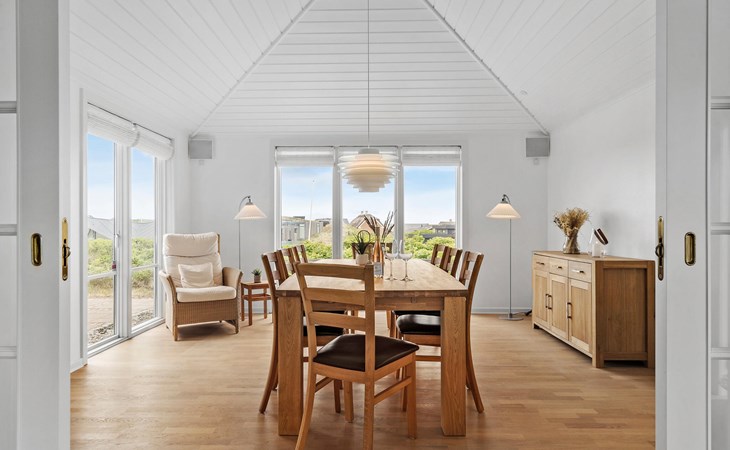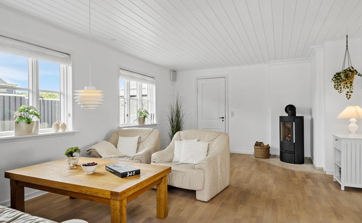 Look forward to relaxing days in this charming holiday home in Søndervig. The idyllic location near the coast and the cosy atmosphere of the house make it the ideal retreat for a break by the sea. The inviting living ambience impresses with its bright rooms and stylish furnishings. Make yourself comfortable on the cosy sofas in the spacious living room and enjoy the sweeping views through the large windows. The wood-burning stove provides cosy warmth on cool evenings. Use the practical kitchen to prepare delicious holiday meals for the whole family.