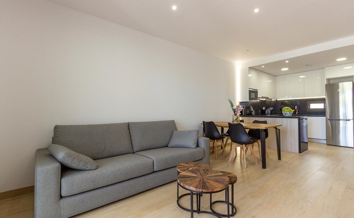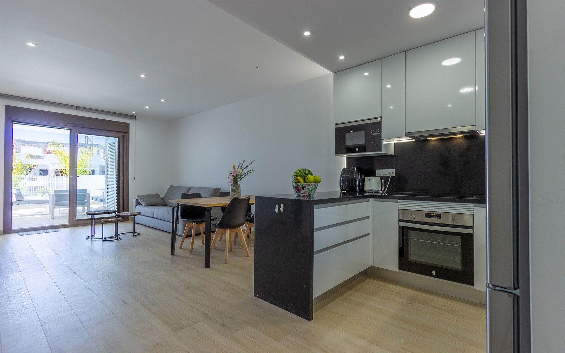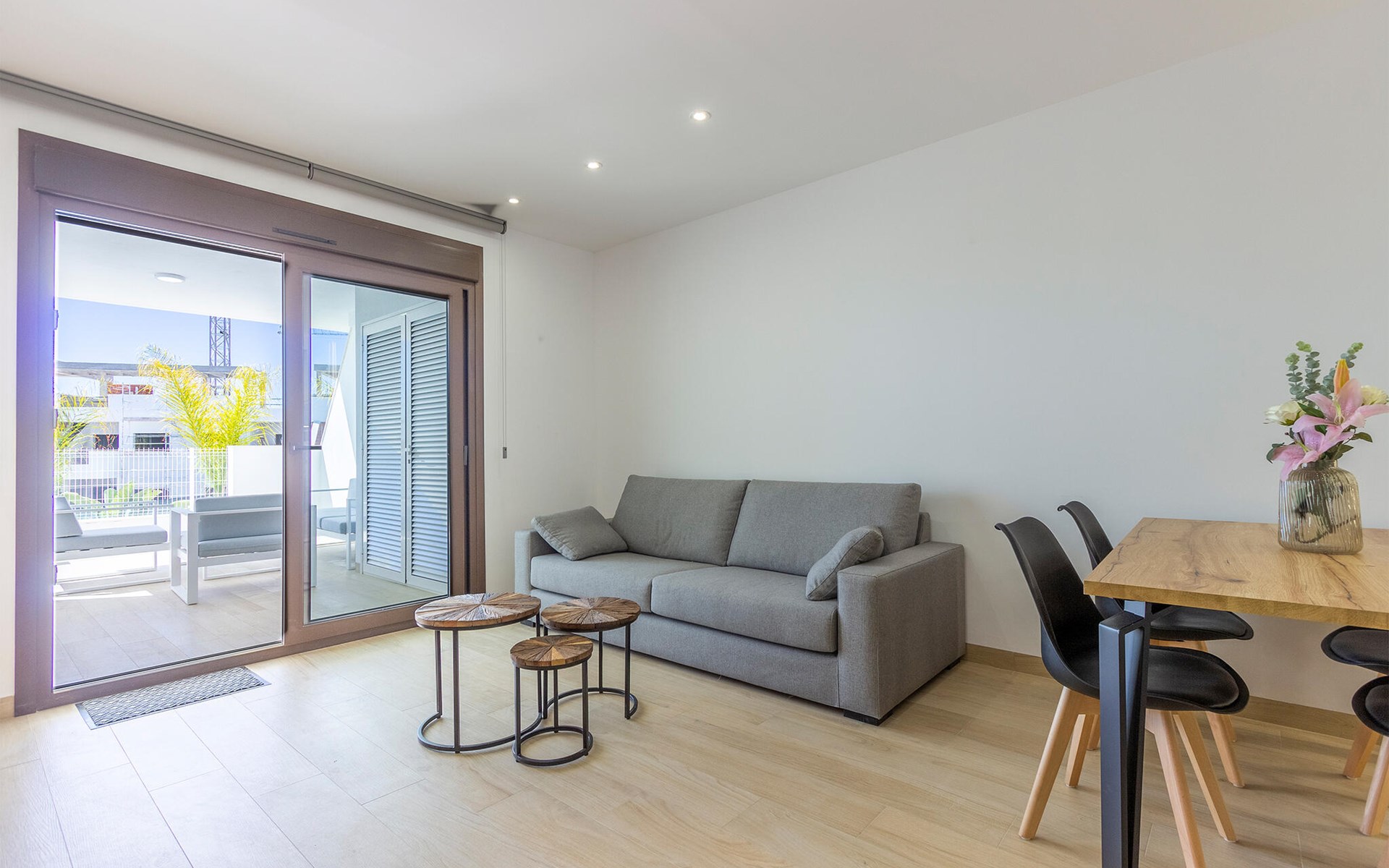 The inviting apartment welcomes you in a beautiful location not far from the sea. It is the ideal place for a soothing break, where you can relax by the beach and pool as well as explore the surrounding area. Use the modern and tastefully furnished rooms as the basis for an unforgettable time together, while the comfortable sofa invites you to relax together in the evening.