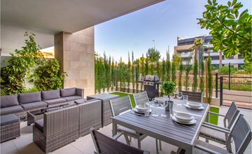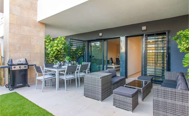 This exclusive and modern vacation apartment welcomes you on the first floor. Relax with your loved ones in this luxuriously furnished accommodation and enjoy the open concept of the large living space. The spacious terrace offers you a great opportunity to enjoy your meals in the open air or sunbathe on the high-quality garden furniture.