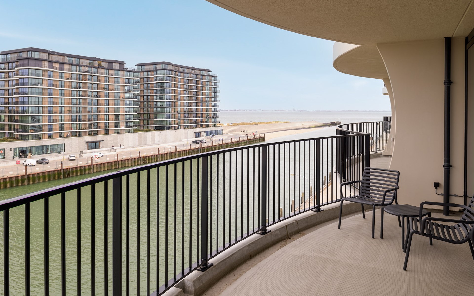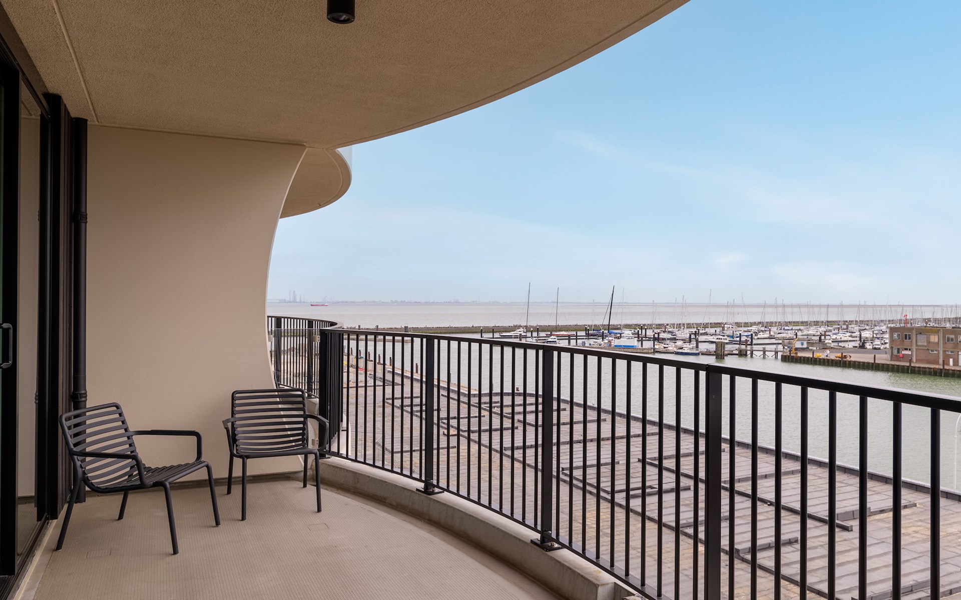 Apartment Mistral Harbour has two balconies, both furnished with comfortable patio furniture. From the living room you can step out onto the balcony with a view over the Westerschelde. Both three bedrooms have access to the second balcony with a view of the harbour of Breskens. So you can always enjoy a beautiful view from your apartment!