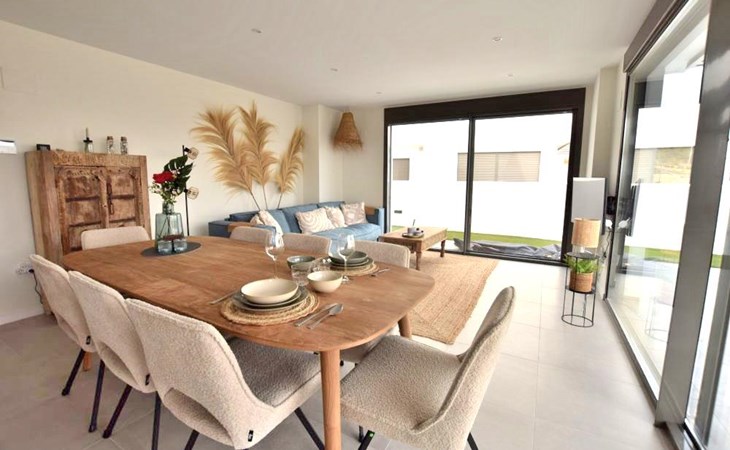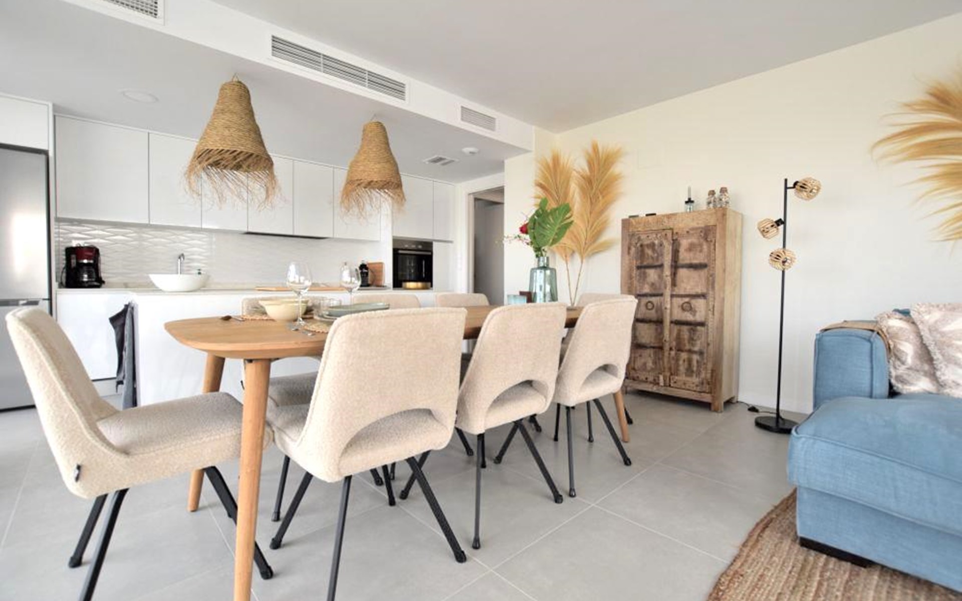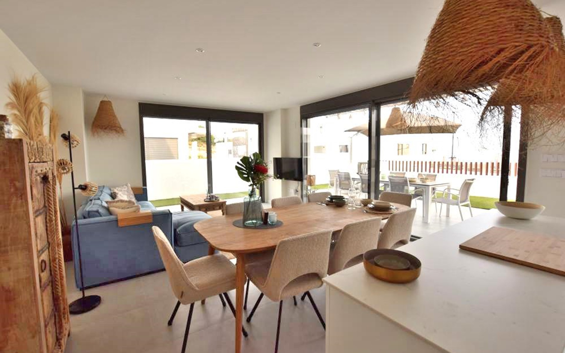 The apartment has 3 bedrooms and 2 bathrooms. The accommodation offers a lawned garden, a communal garden with gravel and trees, wonderful views of the sea, the valley and the mountains, and beautiful views of the countryside. Its comfort and the vicinity of shops, sports activities, entertainment facilities, and places to go out make this an ideal apartment to spend your holidays in Spain with family or friends.