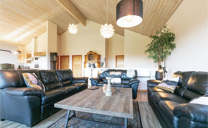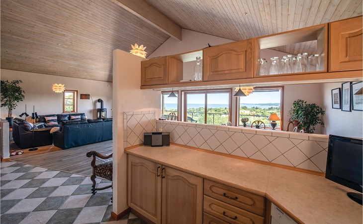 Well-designed two-story cottage with high comfort and fantastic sea view from the large balcony. The beautiful vacation home is located on a large sloping plot with lawn and terrace areas on the first floor, where you can really enjoy your vacation and relax in a beautiful environment. The cottage offers a large combined living and dining room with quality furniture, free internet access and a good ceiling height. From the living room you have a beautiful view of the surroundings, the coast and the sea and direct access to the large balcony where you can sit in comfortable garden furniture and enjoy the view. Some of the bedrooms have a TV. In one of the bedrooms is the jacuzzi of the house, which adds a touch of luxury uvergeben.
