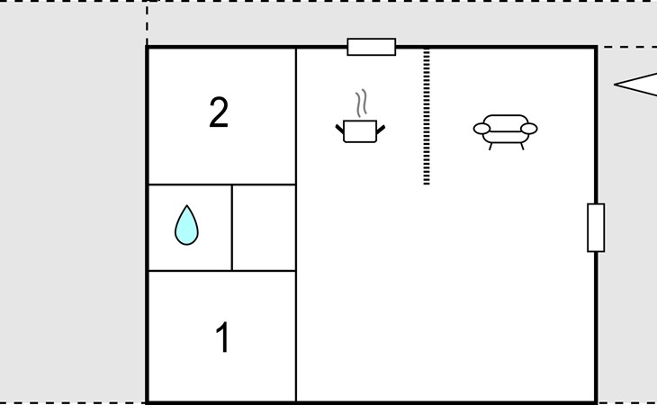 The cottage is situated on an uneven dune plot. Its floor plan is 60 m², the Hems measures 25 m², here is a double bed. The Hems is reached via a staircase. From the parking area at the house and along the house are tiles to make the house more accessible for people with limited mobility.