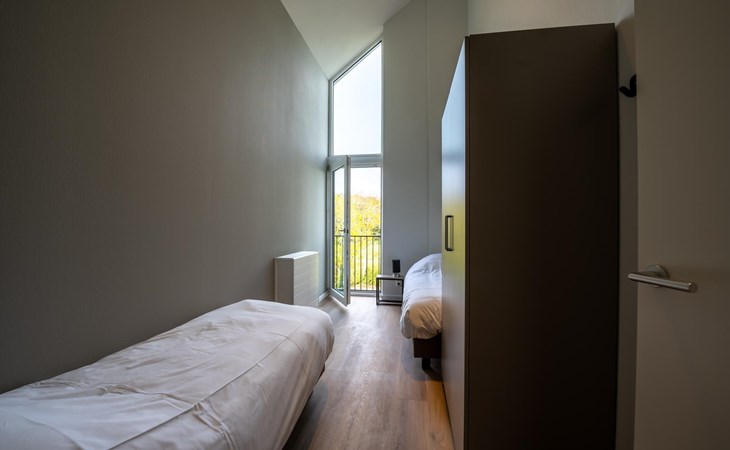 This penthouse is located on the second floor and is equipped for 4 persons. The entrance provides access to two spacious bedrooms, one with a double bed and one with two single beds. In addition, this penthouse has a loft with two single beds. On request, we can book this appartment for 6 persons. Upon arrival, we ensure that the beds are freshly made for you and towels are provided. The modern bathroom has a walk-in shower and washbasin. There is also a separate guest toilet. The spacious and attractively furnished living room has a comfortable seating area and a Smart TV with foreign channels. From the living room you also have access to the spacious terrace on the north-west with luxurious, comfortable garden furniture and a view over the polderlandscape.