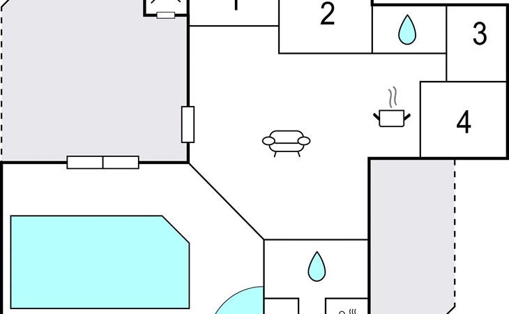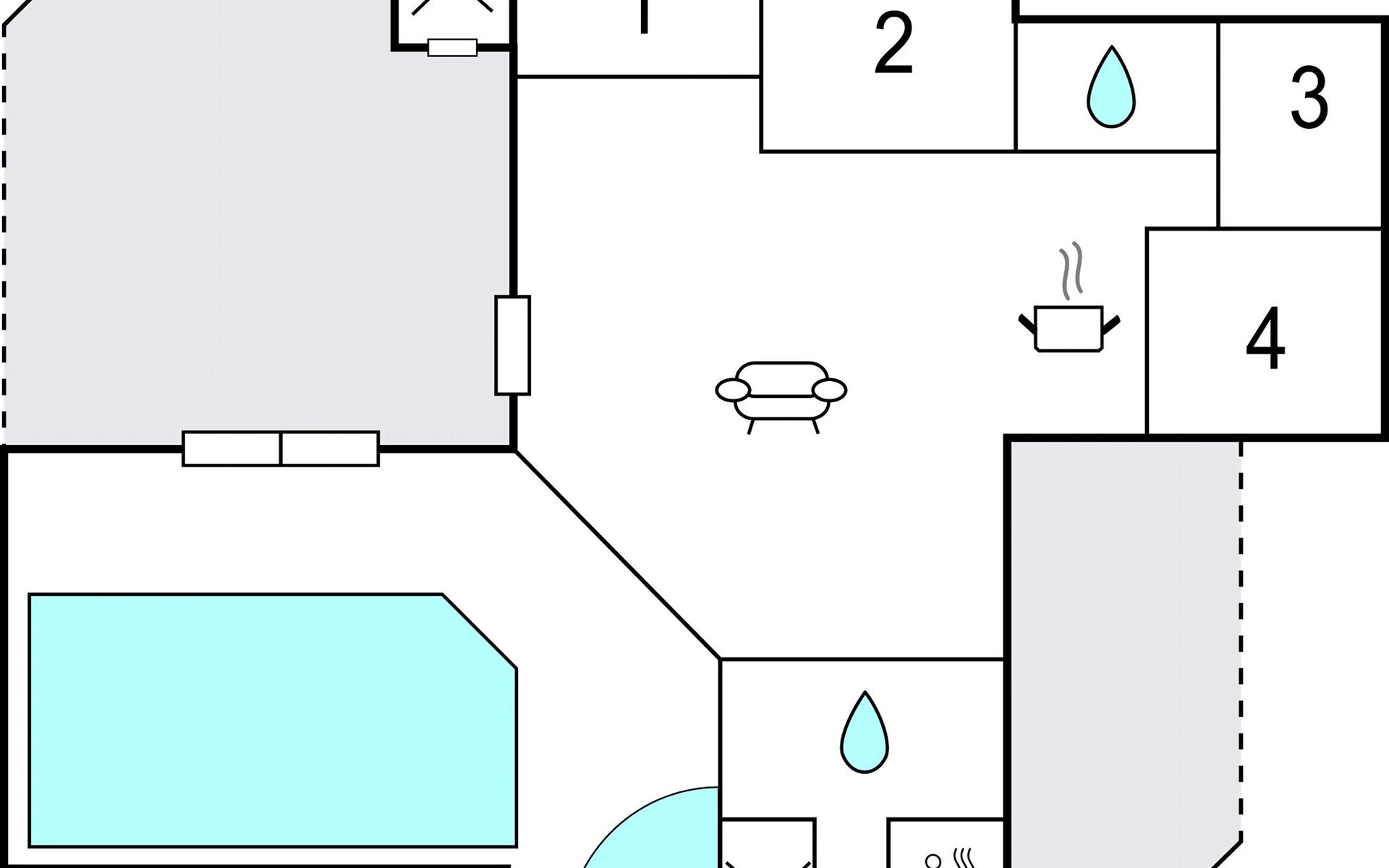Fjord view! With the Limfjord only 100m away, this 160m2 luxury wooden house was built in 1990 on a 1000m2 natural plot. The North Sea with its large, wide sandy beaches is about 6000m away; so you can even see it from the cottage on a clear day. A 17m2 sw. pool awaits you in the 45m2 pool room, which is partly visible from the living room. To the side of the pool room is your massaging whirlpool. Up to your chin you sit in swirling, water and enjoy a heavenly underwater massage. Adjacent to this is the solarium and one of the 2 bathrooms, as well as the sauna. The 40m2 wood-paneled living room is comfortably furnished for you with, among other things, a fireplace stove and is in connection with the open kitchen/dining area. 4 bedrooms are furnished with (1D)+ (1D)+(1D)+(2K). The Hems accommodates 4 children sleeping places (4M). Very suitable for 2 families as there are 2 bathrooms. 2 large terraces with garden furniture. Mini golf nearby (free of charge). !Telephone w. counter, microwave, satellite TV, baby crib, high chair, swing, sandbox, video, stereo grill, playhouse.