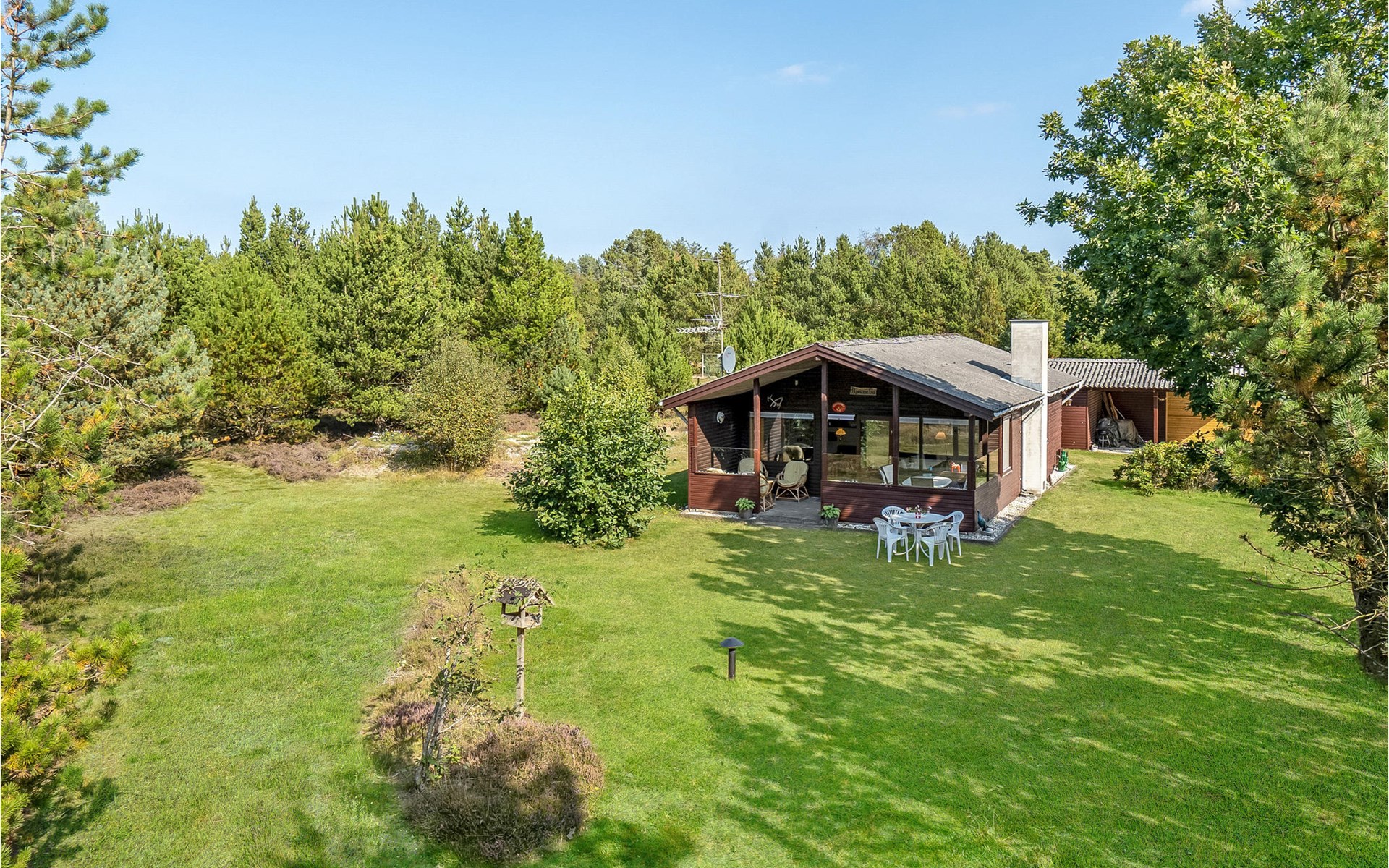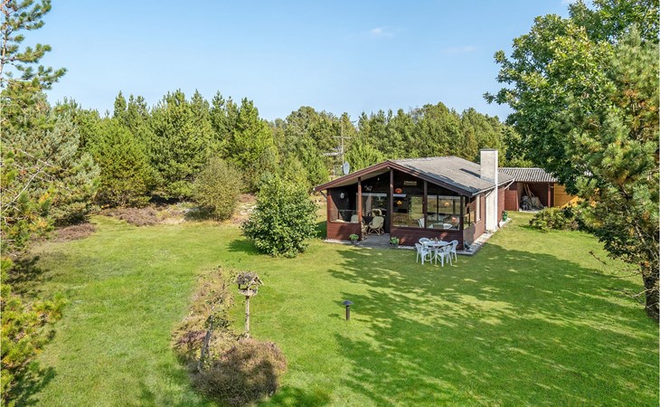 Situated on a spacious, heather-covered natural plot near Bratten beach, this cosy holiday home is set in beautiful surroundings close to the Kattegat. Here, unforgettable moments await you in the open-plan living area, where the kitchen and living room merge seamlessly into one another and are flooded with natural light through the large windows. Make yourself comfortable with a good book or a board game in front of the wood-burning stove and switch off from everyday life.