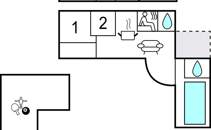 Welcome to this beautiful thatched-roof house in Agger. The spacious house offers plenty of room for a larger family or several families of friends. Enjoy time together in the large living room, where you can cook, eat, play and relax together. Relax in the in-house sauna after an active day or enjoy a nap in the alcove on the first floor. There is a wide range of activities on offer in the beautiful house and outbuildings. Last but not least, you will find a pool house with a swimming pool and whirlpool, which promises bathing fun in all weathers for young and old. There is also a good entertainment programme in the second outbuilding. Here you can have fun with billiards, table football and other games.