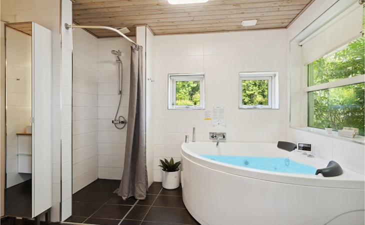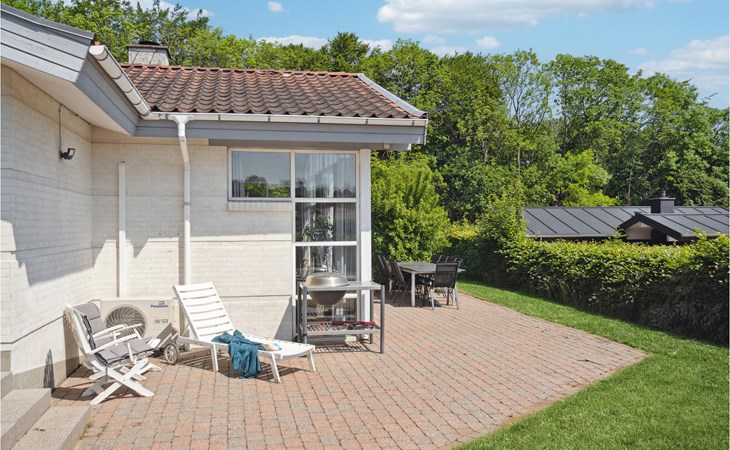 Spend your vacation in Grønninghoved and this tasteful and bright vacation home. Together with your extended family you can make yourself comfortable in the beautiful house. With sauna and whirlpool you already have the best conditions to relax. But also the light-flooded living room on several levels is perfect to enjoy together a fireplace, the view and game evenings. Cooking in the modern kitchen will also be fun and invite you to try new recipes. In the evening, you can barbecue on the large terrace while your children climb and swing. Enjoy the view of the water and make plans for the upcoming vacation days.