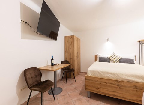It is located on the ground floor facing the street and is ideal for couples or small families with pets. Spend many pleasant hours on the large terrace. Here you can enjoy your morning coffee while you plan the day's activities and excursions. Later, you can enjoy the view and the balmy summer evenings over a delicious dinner.