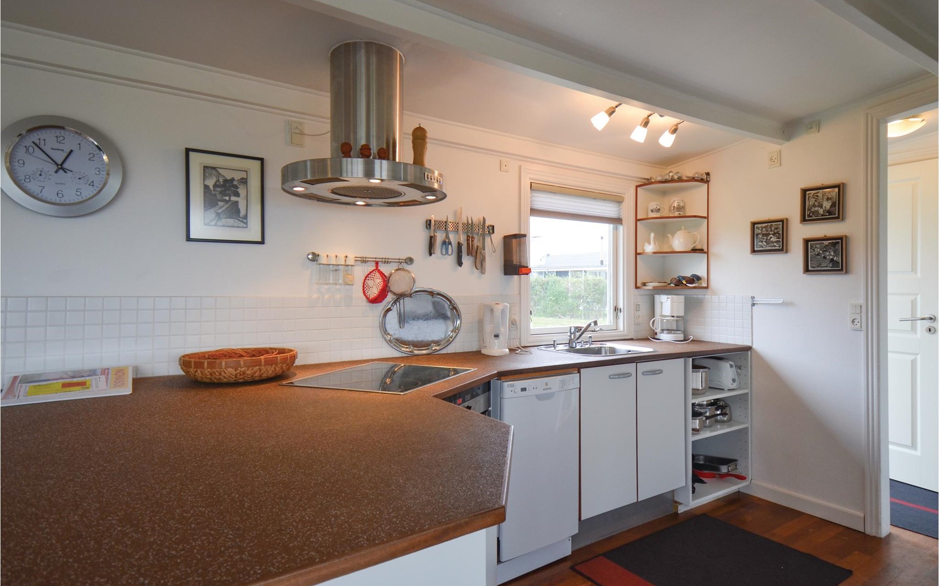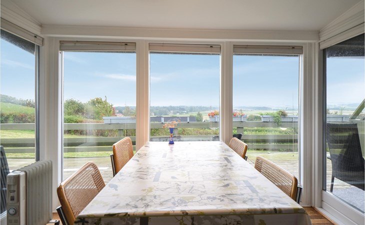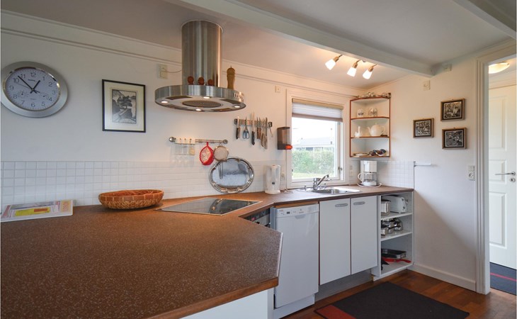 Take a vacation on the beautiful beach of Dråby in this vacation home, decorated in light colors and modern and comfortable.