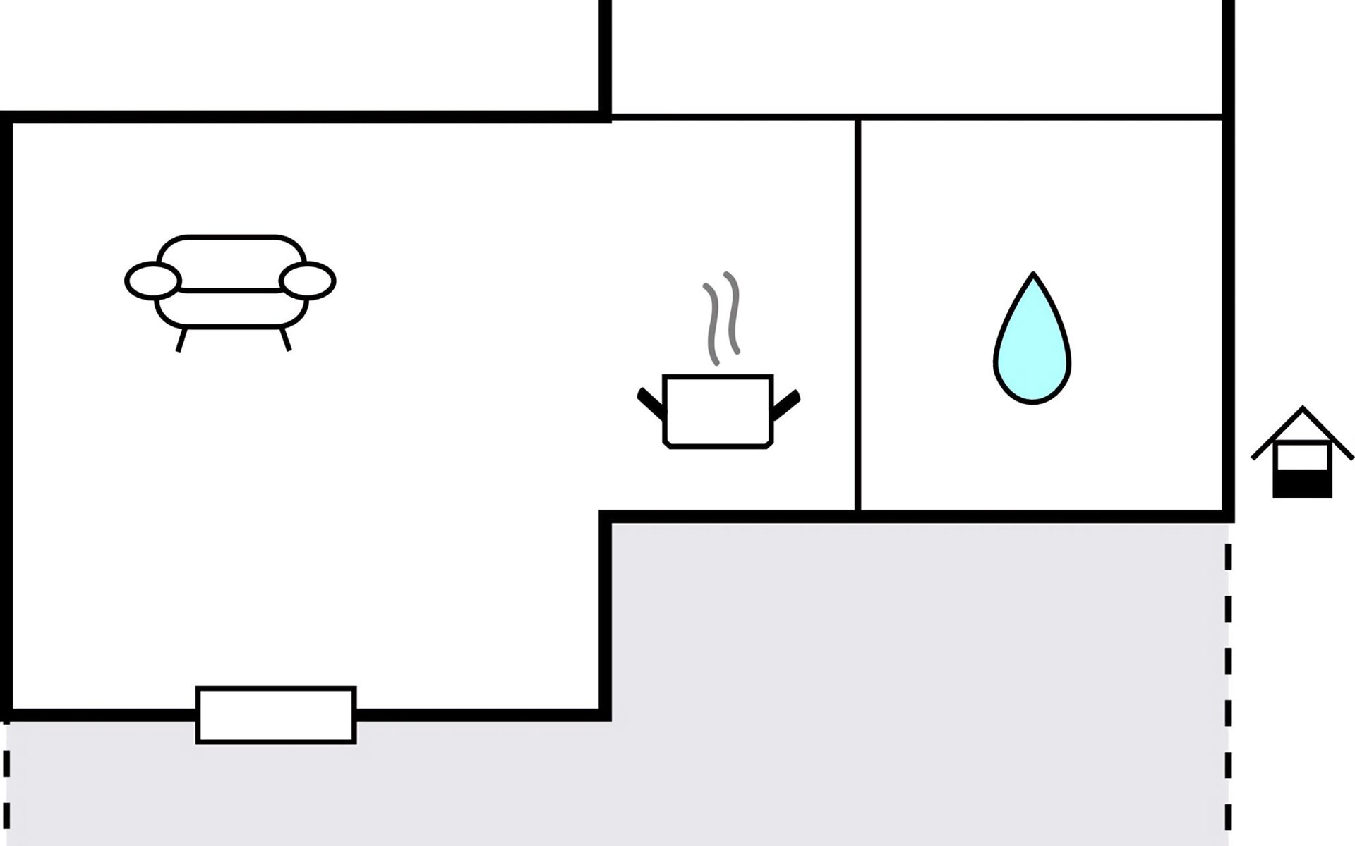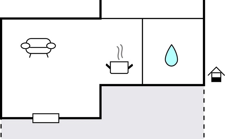 The apartment is located on the ground floor of a family house with several apartments. It consists of a kitchen with living room, bathroom and a bedroom. Your pet is also welcome.