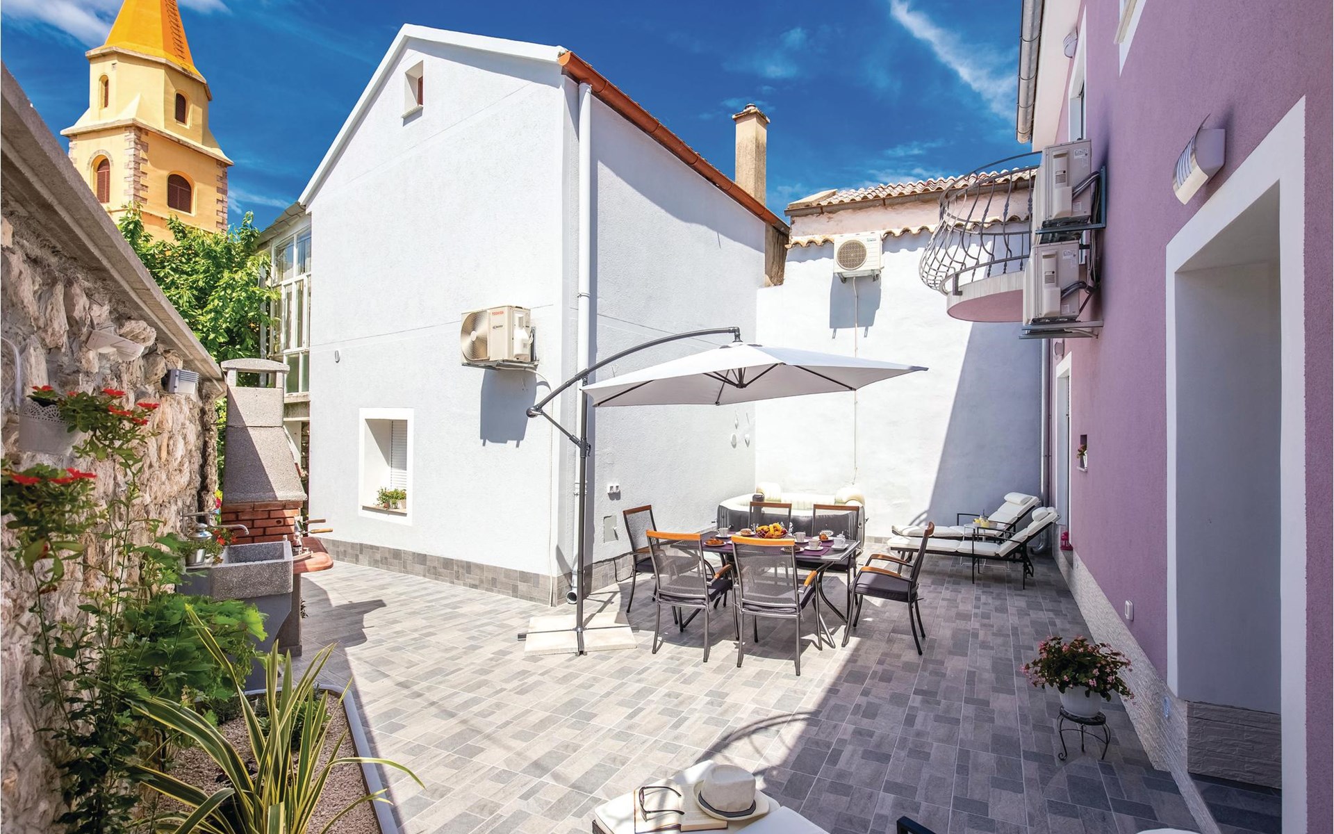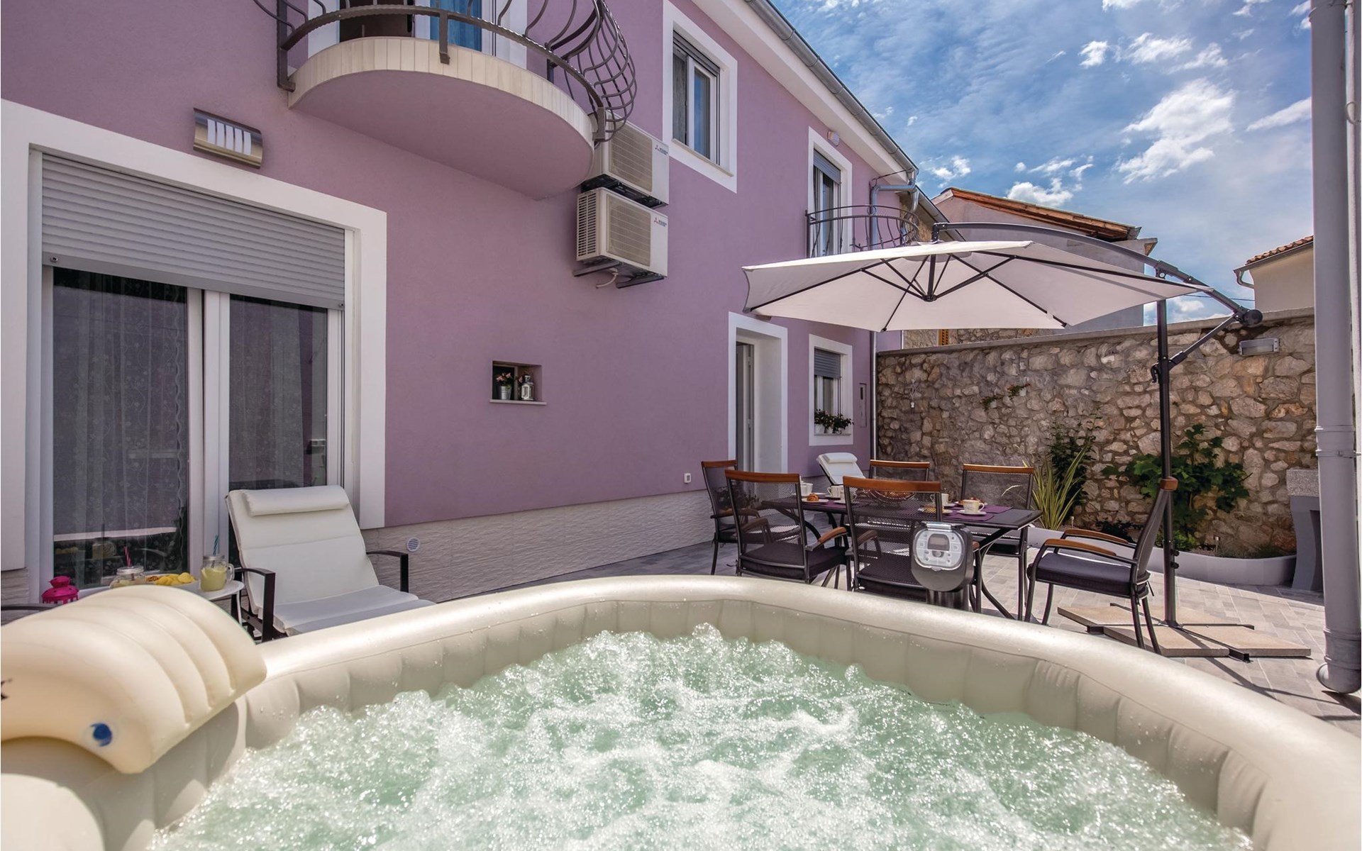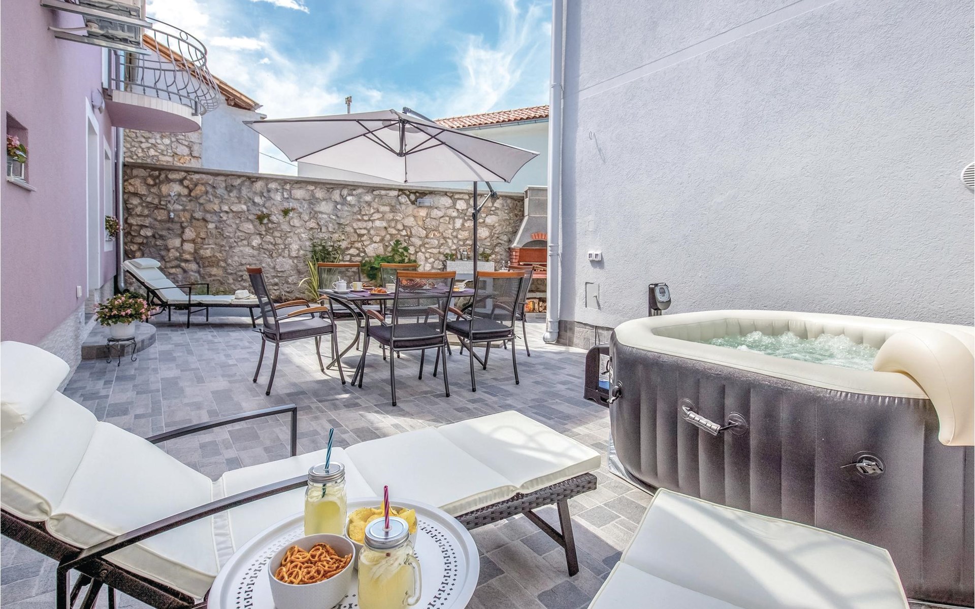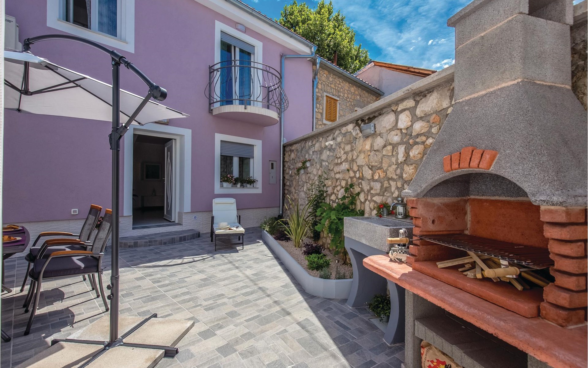 This beautifully renovated semi-detached house, over 100 years old, offers a comfortable ambience for your vacation. It is located in the center of a small village, Grizane, and is just a few minutes drive from the sea. The access to the house is through the owner's yard, but a fence provides the necessary privacy. The outdoor jacuzzi on the terrace is a special feature. On the first floor is the living area and upstairs are three bedrooms. This vacation home offers a quiet vacation not far from the beautiful beaches of Crikvenica.