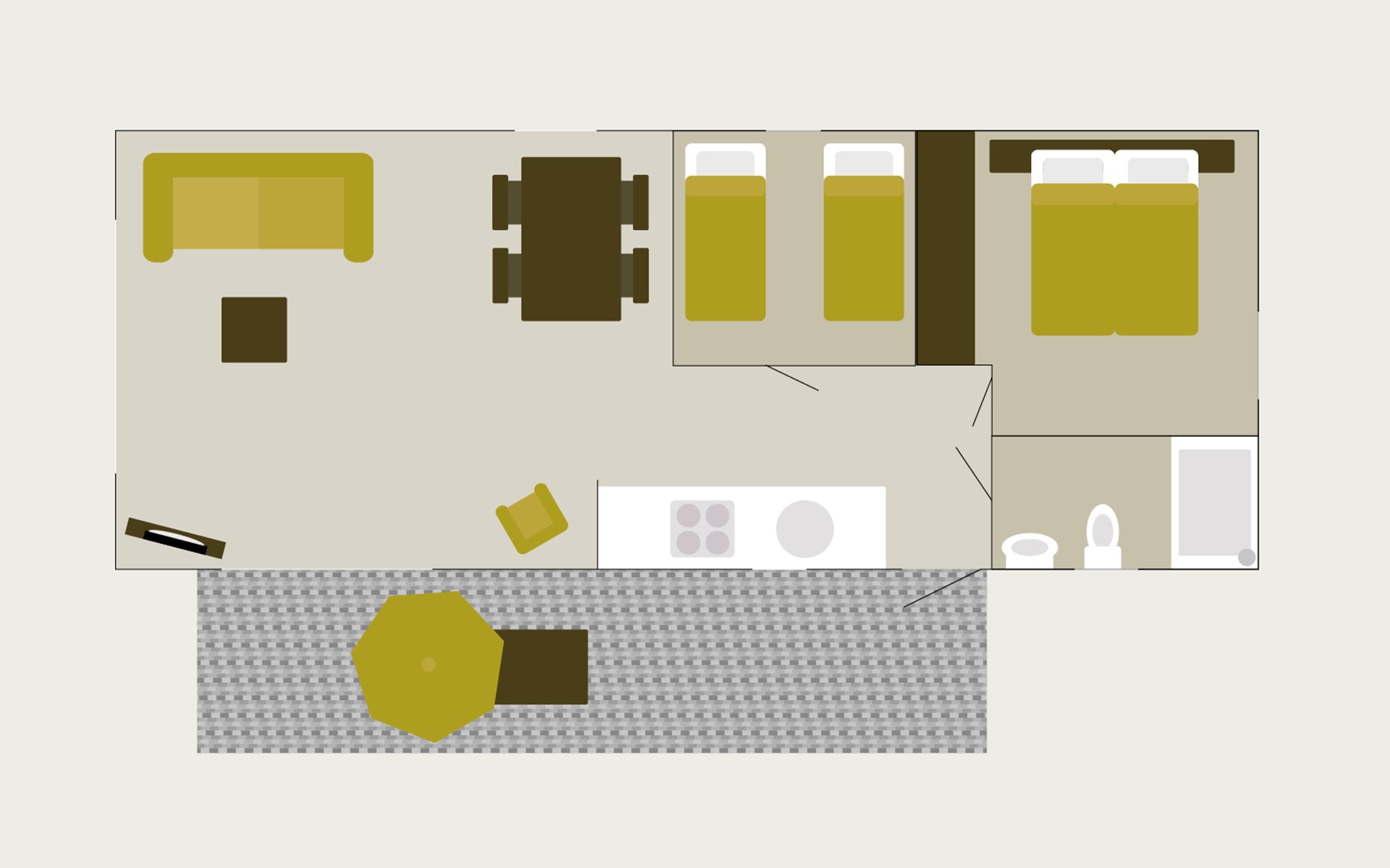 Each Veluwelodge has its own character and ambiance. Some chalets have a veranda, a covered terrace, or a free view over the meadow. Would you like to reserve a Veluwelodge with a specific feature? You can specify this during the booking process in the "choose on map" step.