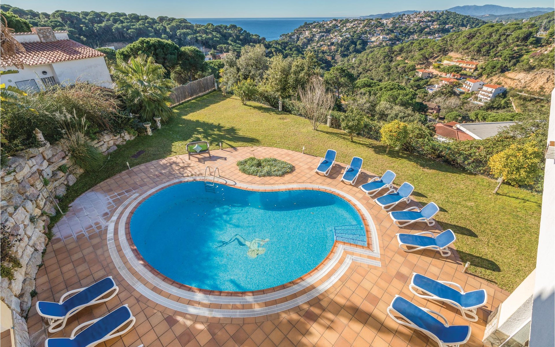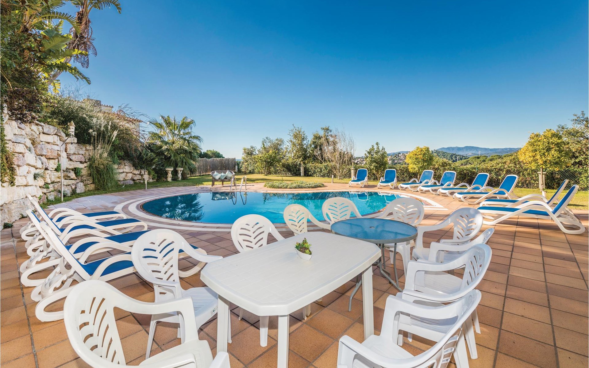 The house has a spacious living area of 350 m² and a garden of 1000 m² with barbecue and fantastic views of the surroundings. The pool is equipped with sun loungers, providing a nice chill out zone to enjoy the wonderful climate of the region.