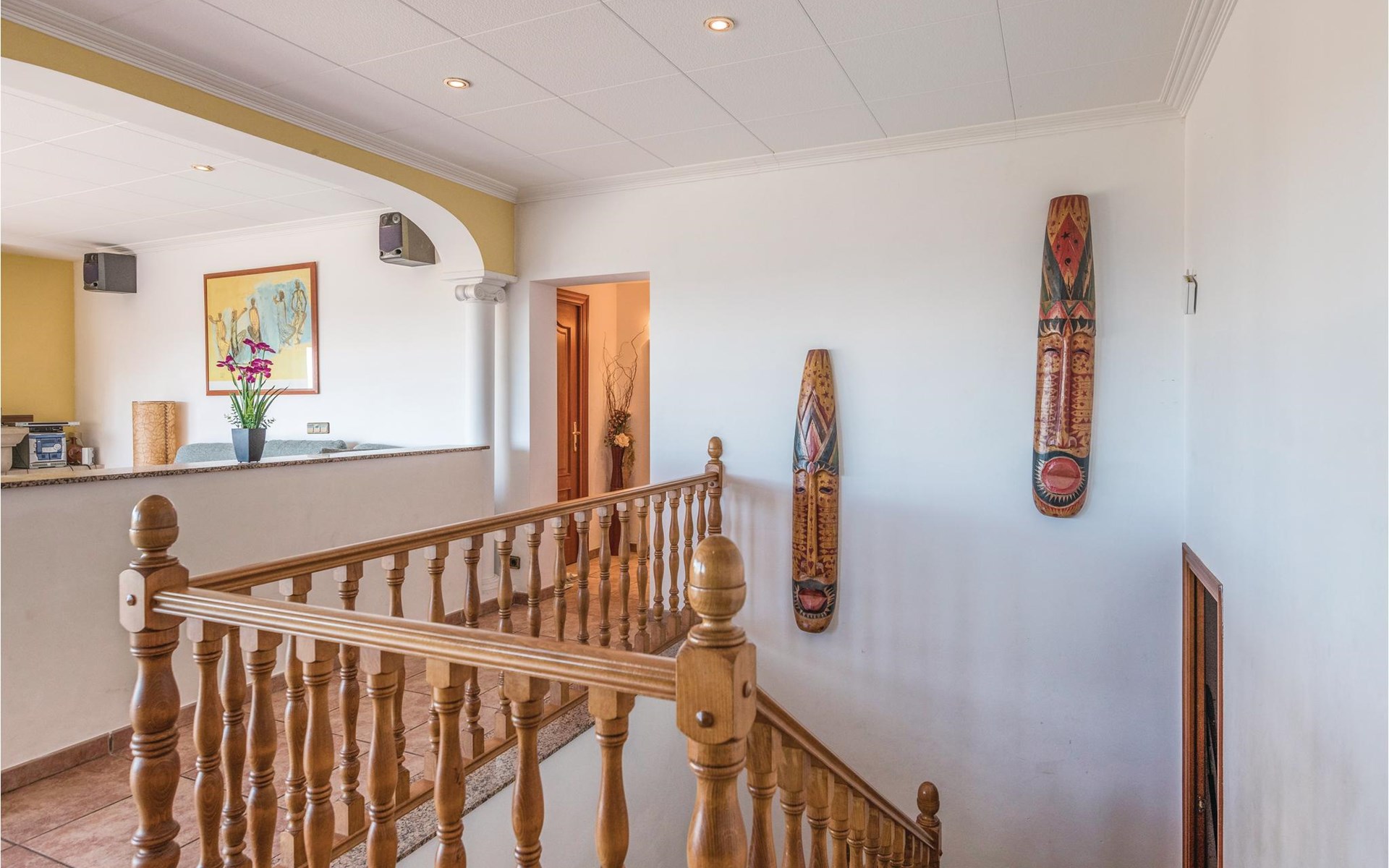 On the first floor there is a kitchen, a bathroom, 2 bedrooms and a spacious living room. Stairs lead to the 1st floor with another kitchen and living room, 3 bedrooms and 2 bathrooms. On the last floor there is a bedroom and toilet.