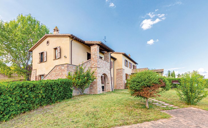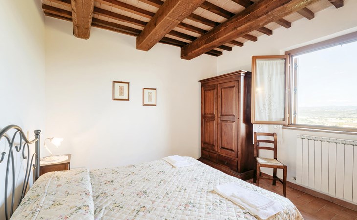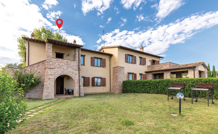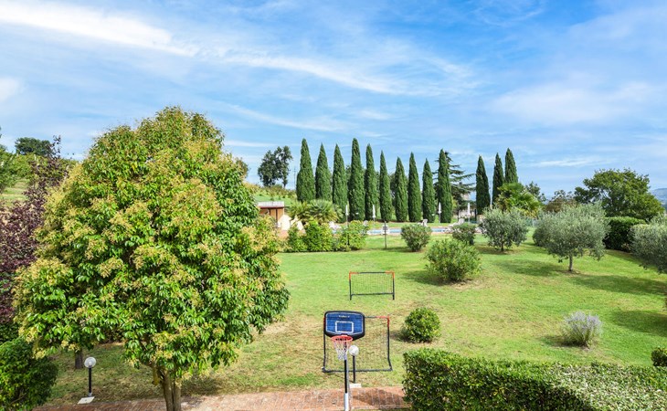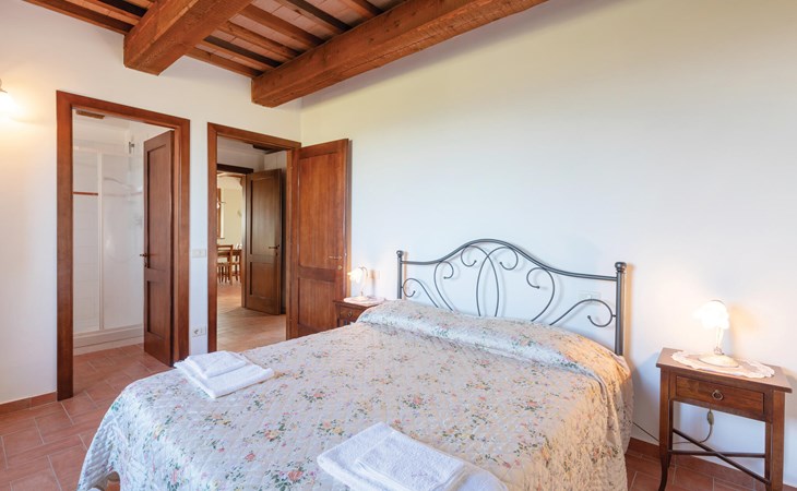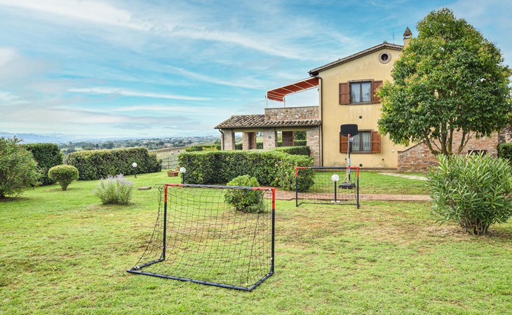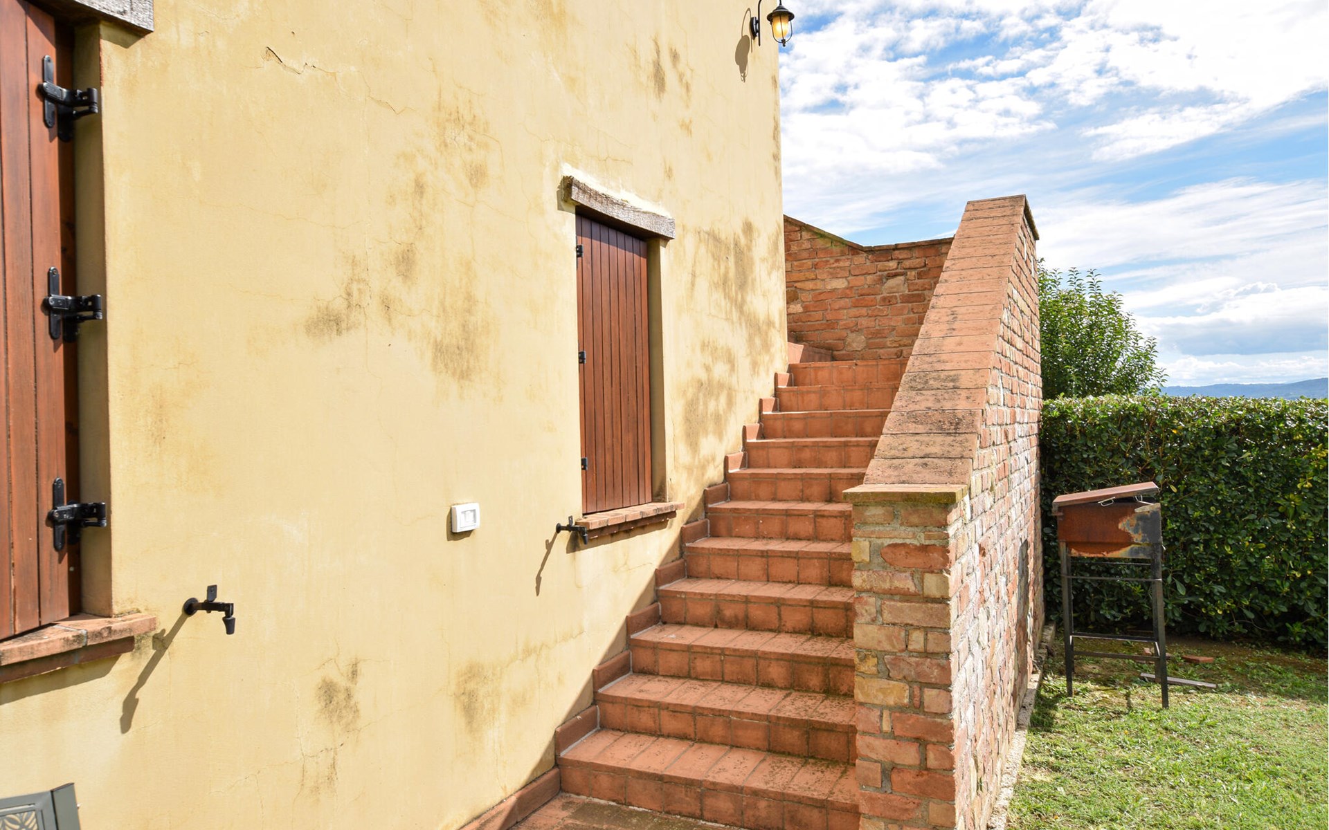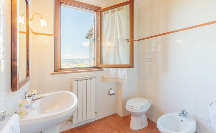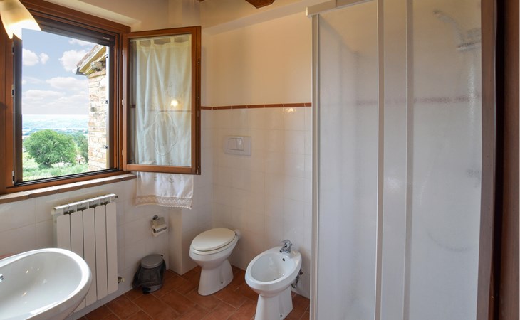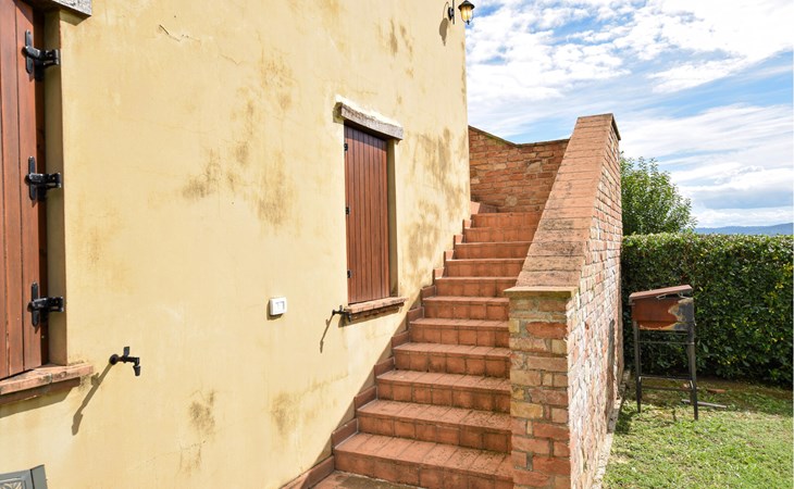 Discover the beautiful region of Umbria from this vacation apartment. It is located in a historic country house on a private property of 5 hectares, on a gentle hill above a beautiful valley with characteristic Umbrian villages. The house has been renovated and transformed into 4 spacious vacation apartments (IUP758, IUP759, IUP760 and IUP761), which can also be booked together for 16 sleeps with the house number IUP773. Enjoy the quiet location and panoramic views of the surrounding area. The pool are for communal use. Accommodation: 1st floor (80m²): Spacious living / dining room (TV), private staircase, down to a green area of about 200 m²; kitchenette, 1 double bedroom with bathroom with shower, 1 twin bedroom, 1 bathroom with shower (washing machine). Distances: 1.6 km grocery stores, 7 km Marsciano (stores of all kinds), 10 km Deruta (very famous for its pottery), 20 km Perugia, 30 km Assisi. The Umbria region with its mix of culture, tradition, unspoiled nature and gastronomic specialties is guaranteed to surprise you!