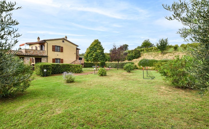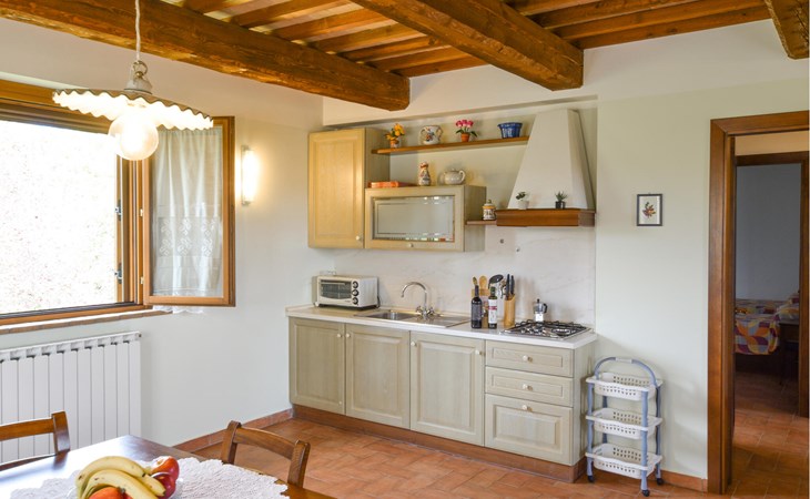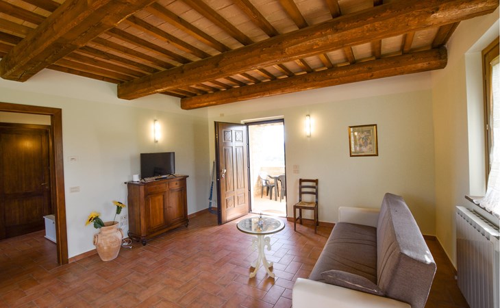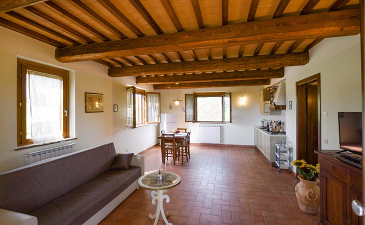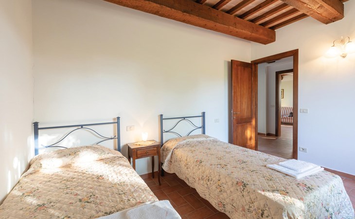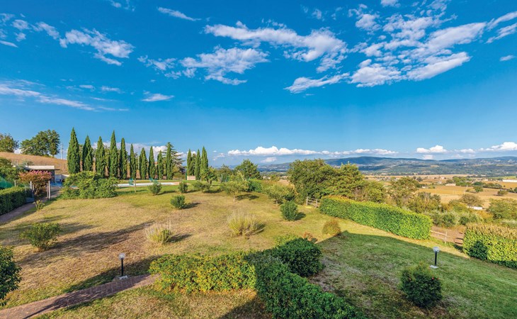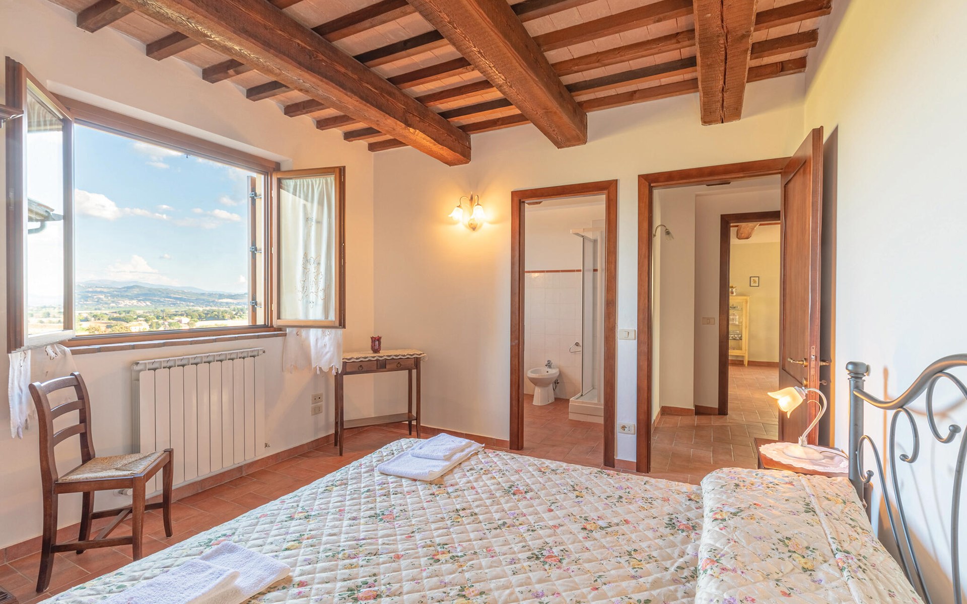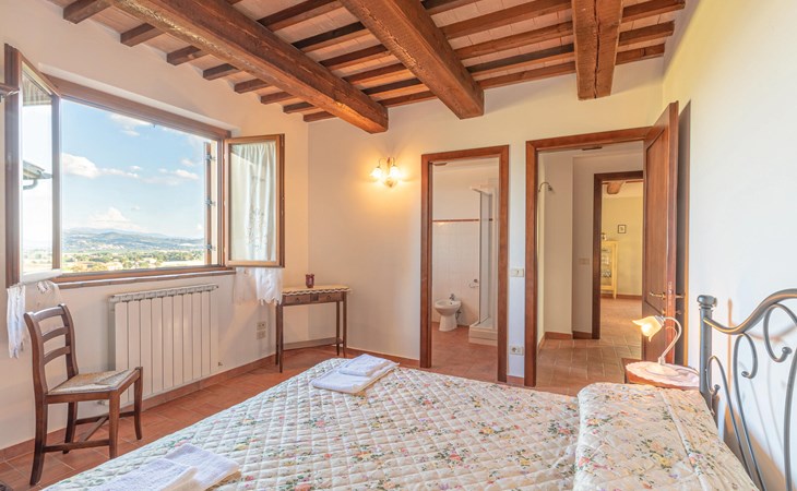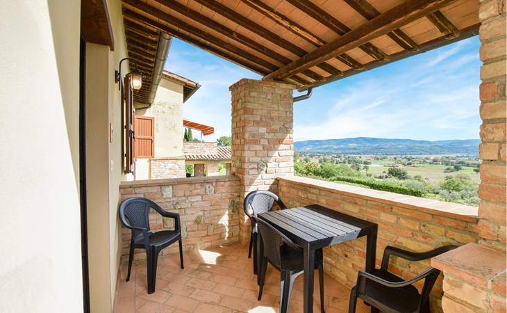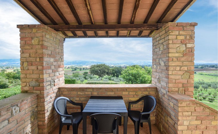 Discover the beautiful region of Umbria from this vacation apartment. It is located in a historic country house on a private property of 5 hectares, on a gentle hill above a beautiful valley with characteristic Umbrian villages. The house has been renovated and transformed into 4 spacious vacation apartments (IUP758, IUP759, IUP760 and IUP761), which can also be booked together for 16 sleeps with the house number IUP773. Enjoy the quiet location and panoramic views of the surrounding area. The pool are for communal use. Accommodation: 1st floor (80m²): Spacious living / dining room (TV), private staircase, down to a green area of about 200 m²; kitchenette, 1 double bedroom with bathroom with shower, 1 twin bedroom, 1 bathroom with shower (washing machine). Distances: 1.6 km grocery stores, 7 km Marsciano (stores of all kinds), 10 km Deruta (very famous for its pottery), 20 km Perugia, 30 km Assisi. The Umbria region with its mix of culture, tradition, unspoiled nature and gastronomic specialties is guaranteed to surprise you!