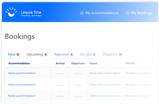 With the Leisure Time Booking Center, you remain fully in control of your accommodation(s). You manage them yourself through your personal dashboard, while we take care of visibility, marketing, and booking processing. This way, you combine convenience with maximum return.