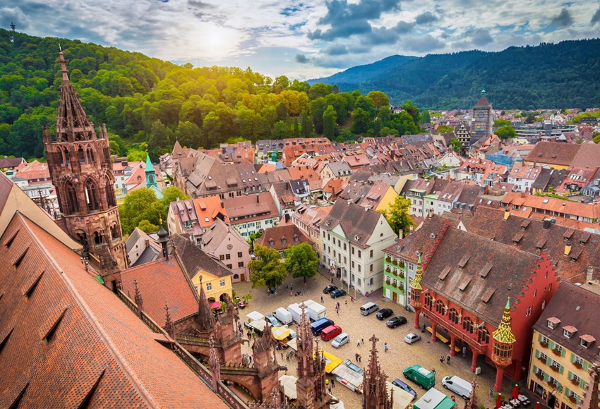The regional capital of the Black Forest is Freiburg im Breisgau. The old university quarter in particular is well worth a visit. One of the city’s main landmarks is Freiburg Minster, a church dating back to the 13th century with stunning stained-glass windows. Via a steep spiral staircase, you can climb to the top for a small fee and enjoy the view.