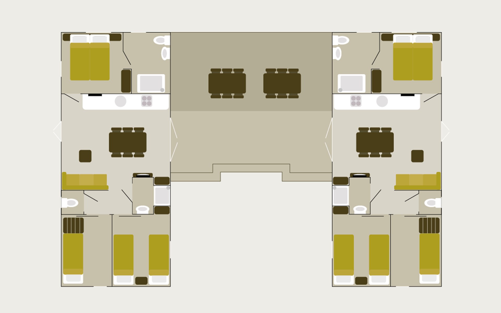 Let op: Familielodge 5+6 en Familielodge 5A+6A zijn allemaal aan elkaar verbonden door 1 veranda. Voor meer privacy kun je een voorkeursboeking maken voor Familielodge 1+2 of Familielodge 3+4.