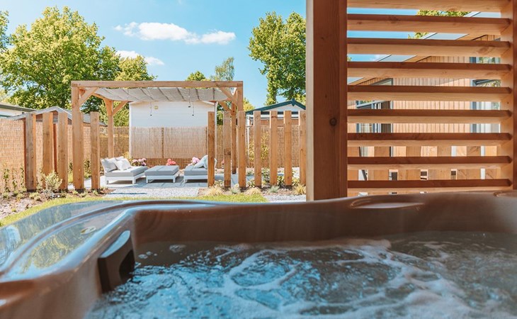 We vonden de tuin met jacuzzi en sauna echt geweldig fijn. De zonnige ligging was top. De faciliteiten van het park zijn erg kindvriendelijk en leuk. Zelfs gebruik kunnen maken van het buitenzwembad.