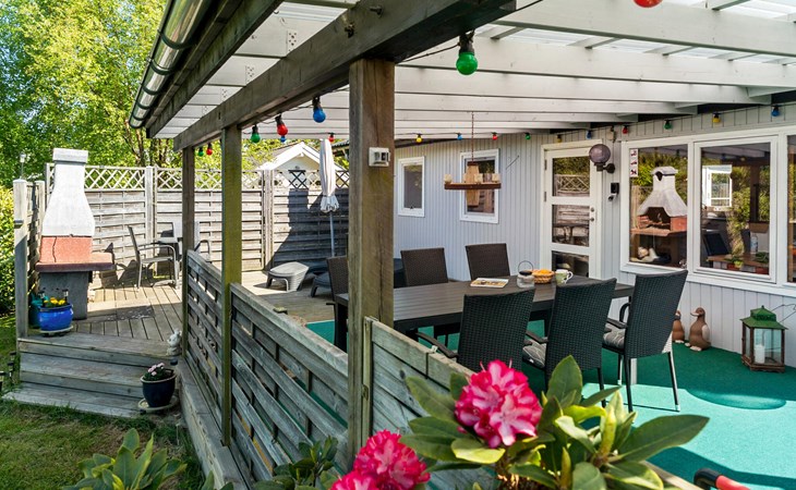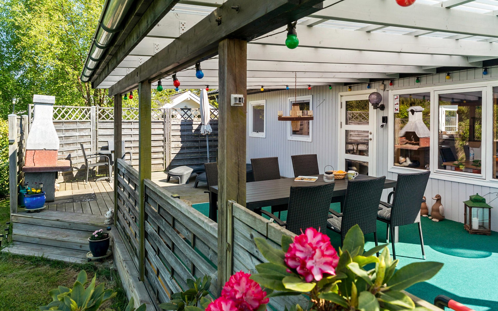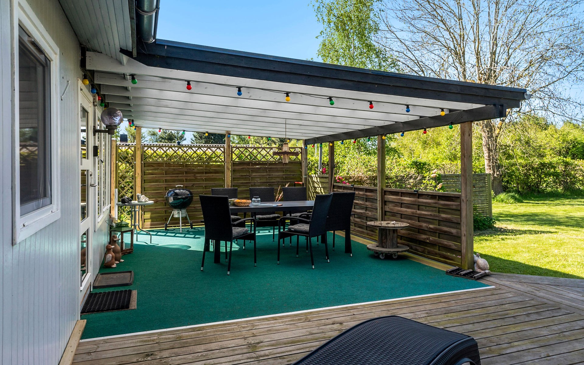 Op het gedeeltelijk overdekte terras kunt u aangename uren buiten doorbrengen in comfortabel tuinmeubilair en genieten van specialiteiten van de barbecue.