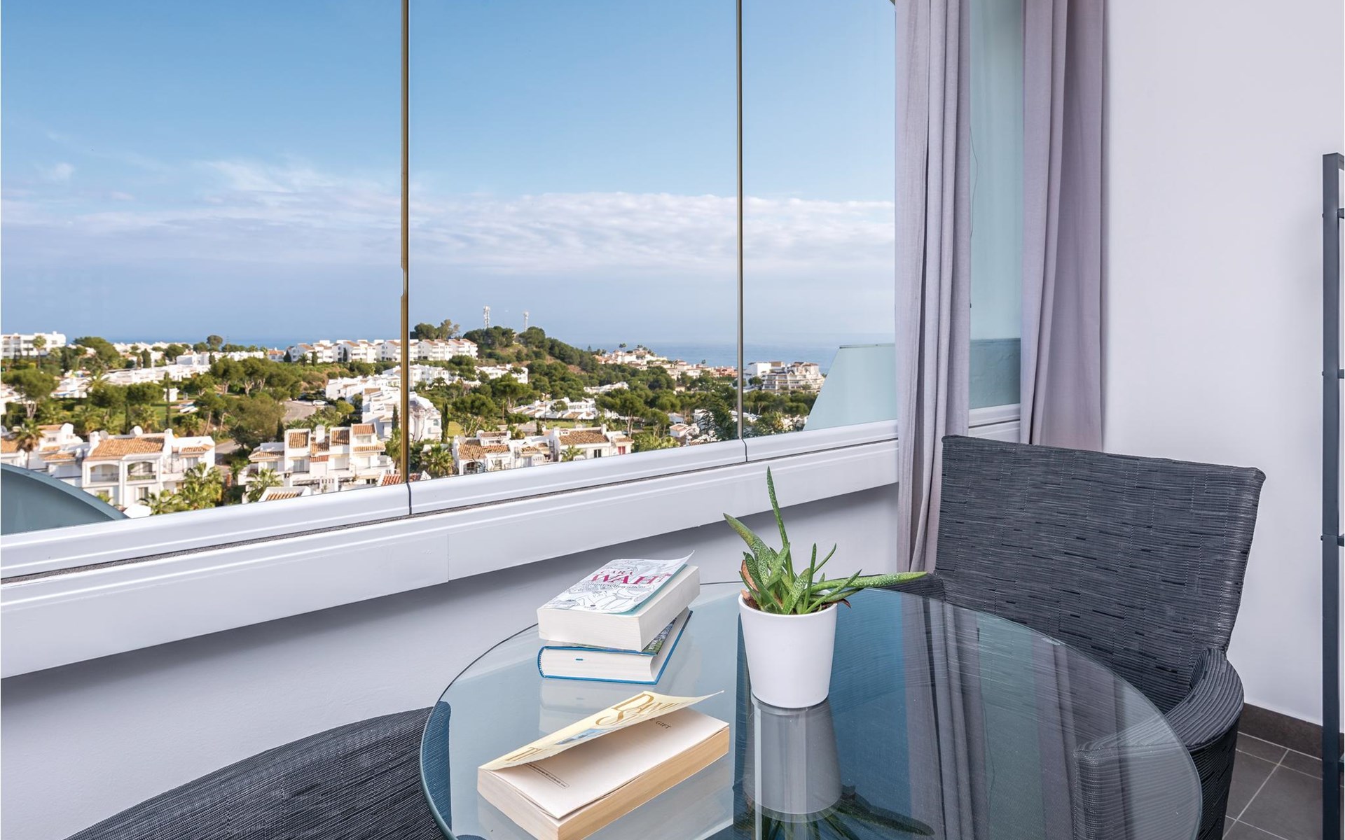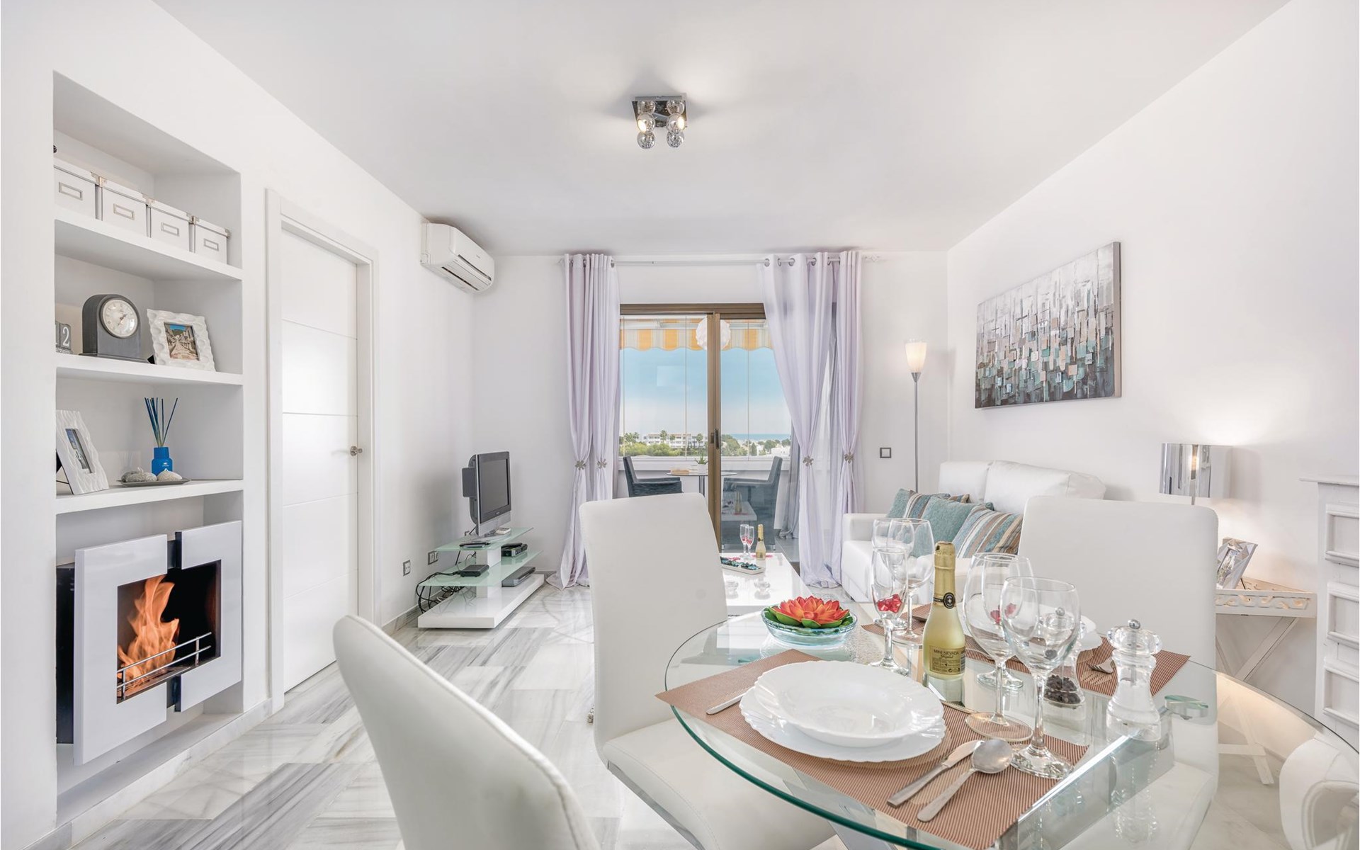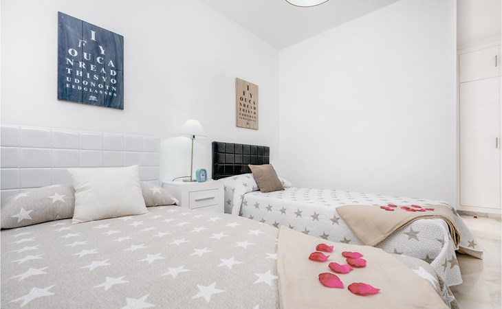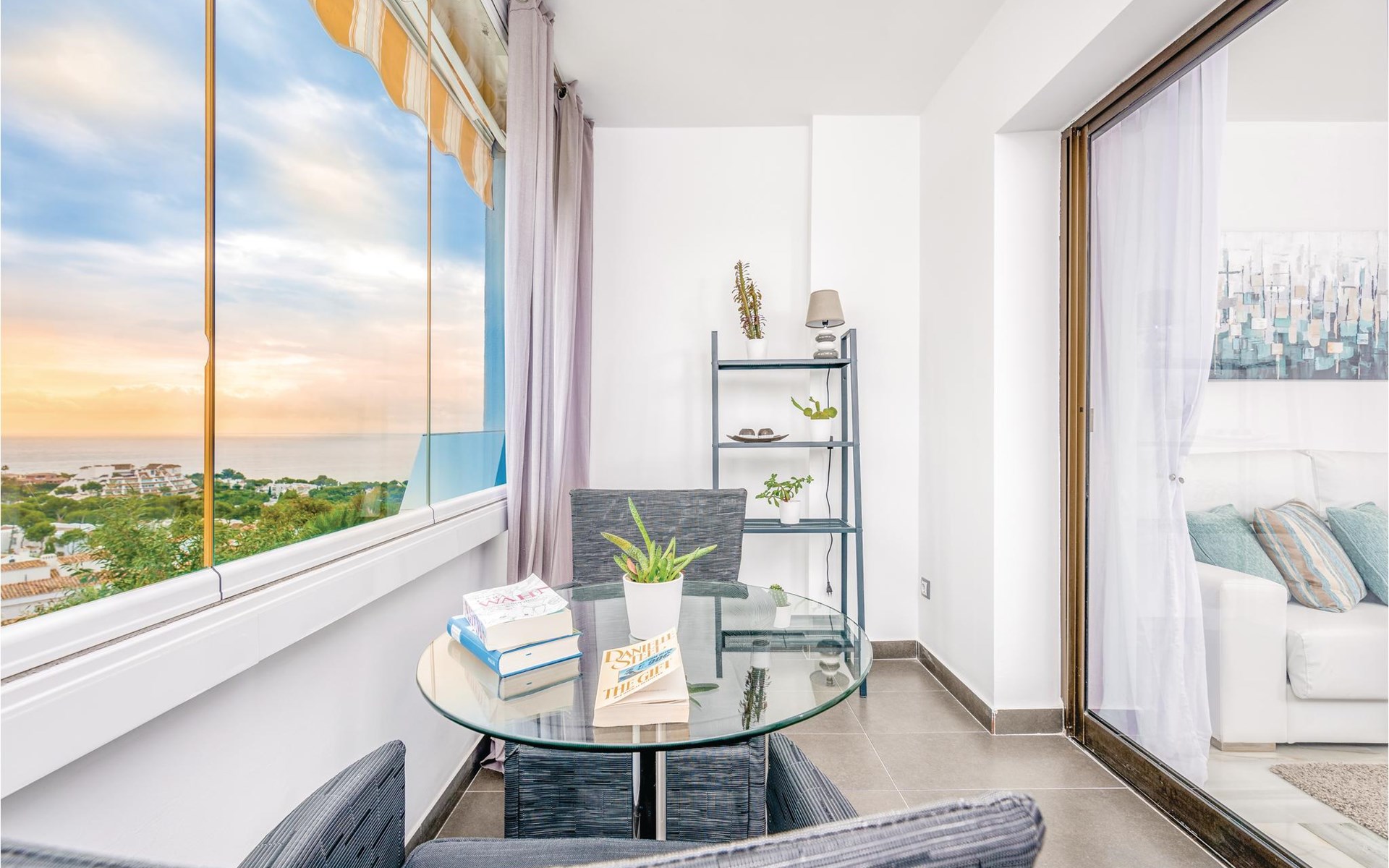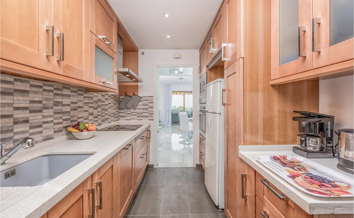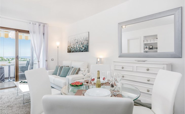 Luxueuze vakantiewoning met stijlvolle inrichting en aandacht voor detail. Een royale raampartij biedt een prachtig uitzicht op de nederzetting en de zee. De accommodatie biedt 2 slaapkamers en 2 badkamers. Het is gelegen in een residentieel complex met een fantastisch uitzicht op de bergen en de Middellandse Zee. Het complex omvat zeer goed onderhouden tuinen en een gemeenschappelijk zwembad. Het strand, evenals restaurants, supermarkten enz. liggen op slechts enkele minuten afstand. Er is ook een beveiligde parkeerplaats met een elektrische poort in het complex.