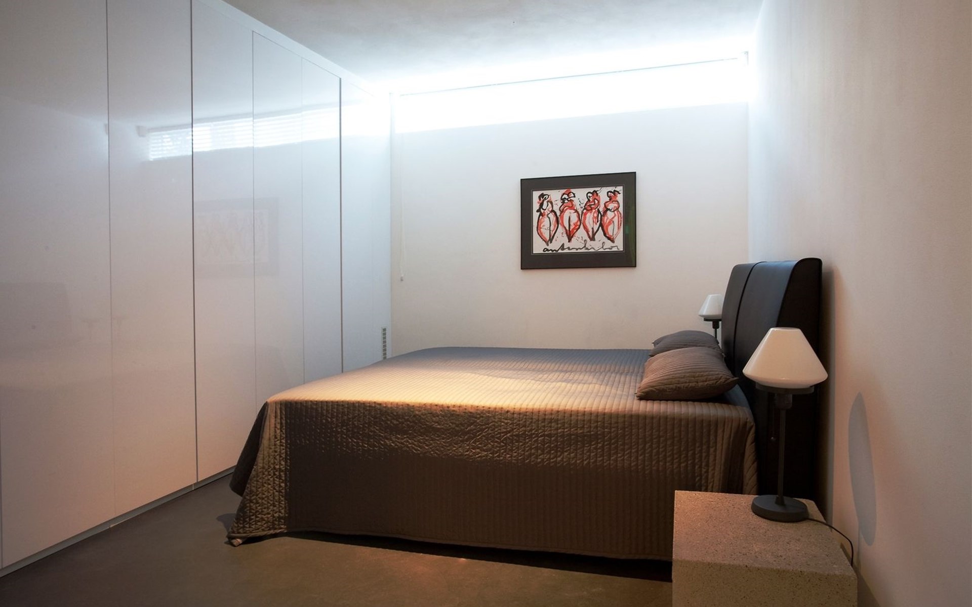 Via een trap naar beneden (open treden, leuning aan muurzijde) bereikt u de slaapkamers. De trap is in de woonkamer afsluitbaar. In de eerste slaapkamer is er een tweepersoonsbed, kluis en kastruimte. Ensuite bevindt zicht de open badkamer met ligbad, dubbele wastafel en douche/Turks stoombad. Vanuit deze slaapkamer komt u uit op een ander terras met 2 ligstoelen en een loungeset. Hier is ook een betonnen buiten(lig)bad (bij vorst niet te gebruiken). Een buitentrap verbindt beide terrassen met elkaar. Tweede slaapkamer met lits jumeaux (eenpersoonsmatrassen en dekbedden), kastruimte en ook ensuite badkamer met douche en wastafel. Apart toilet.