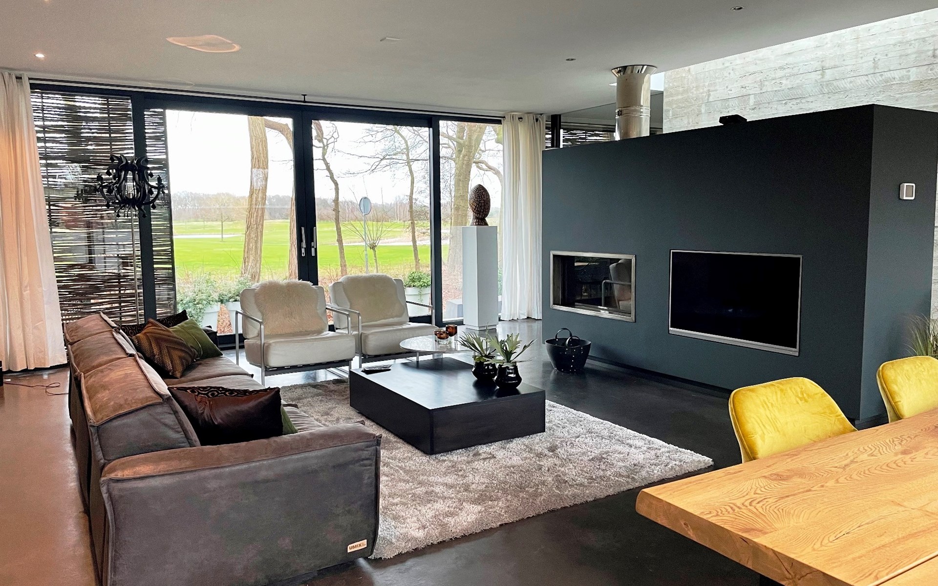 De grote glazen pui aan de voorzijde biedt uitzicht op de golfbaan, vanuit huis kunt u mooie wandel- of fietstochten maken. Er zijn verschillende terrassen bij het huis. En wilt u iets actiefs ondernemen? Een bezoek aan de bourgondische stad Breda, de Efteling of een boottocht in het Nationaal Park de Biesbosch bieden een leuke afwisseling.