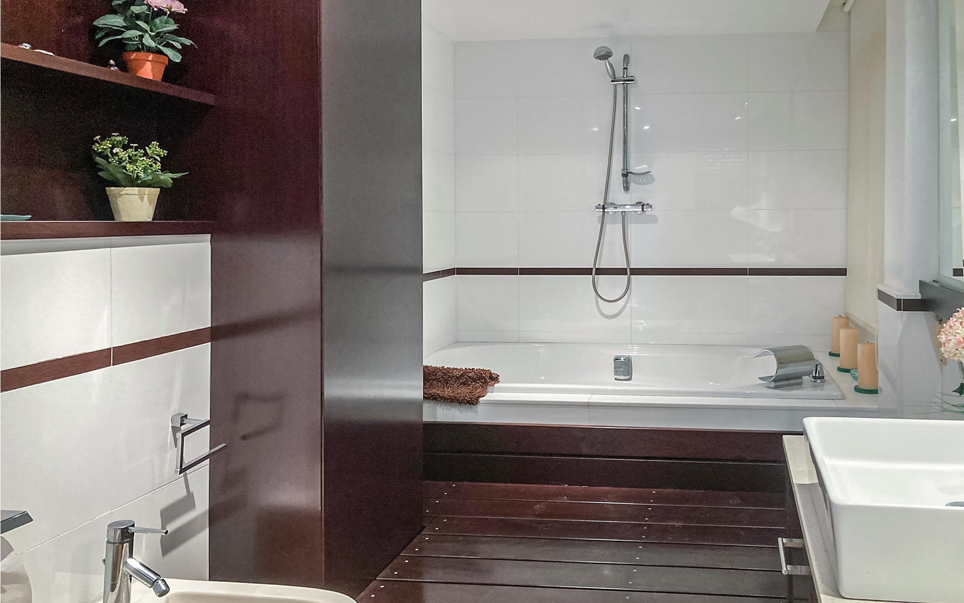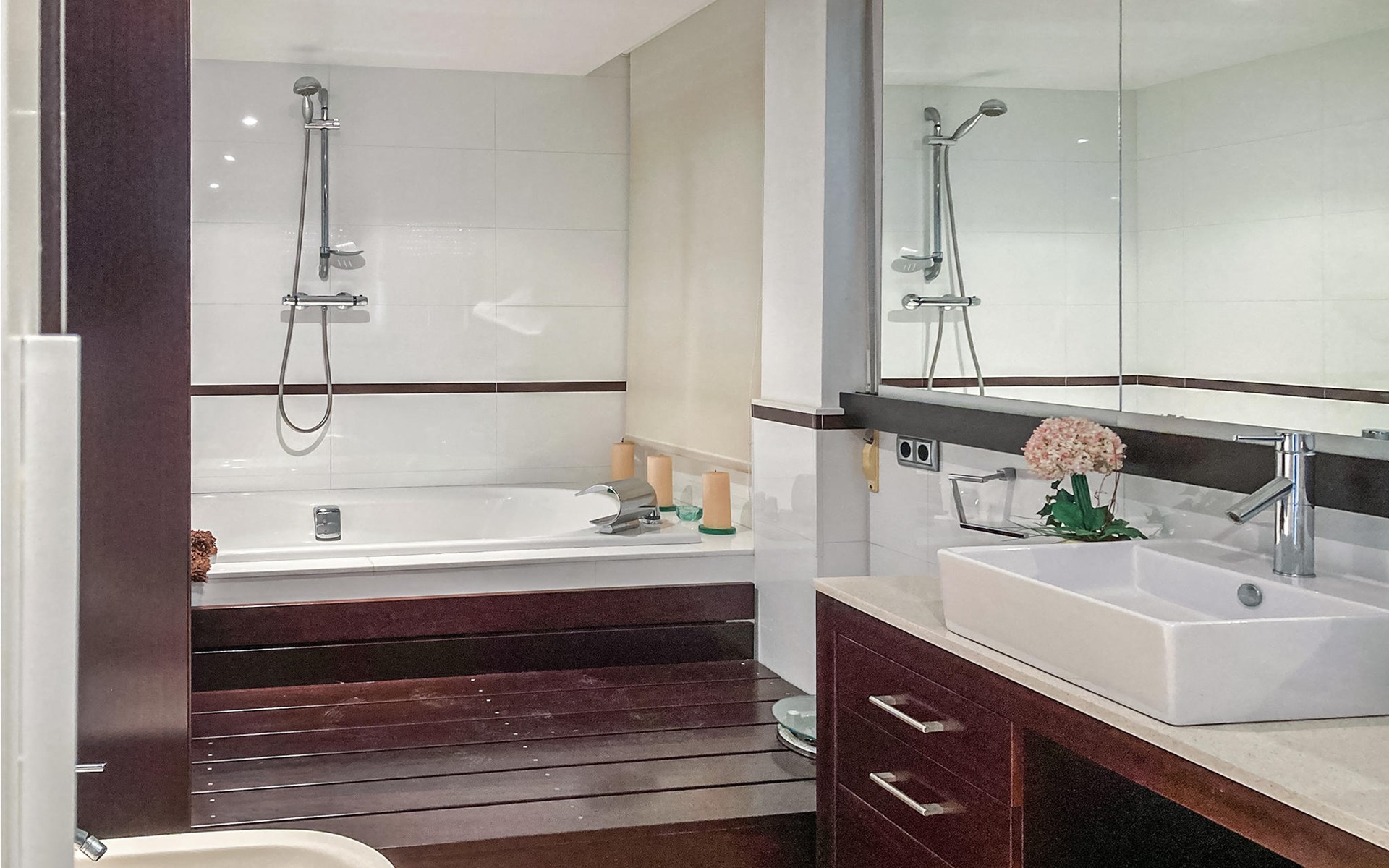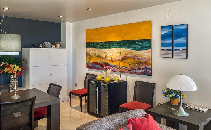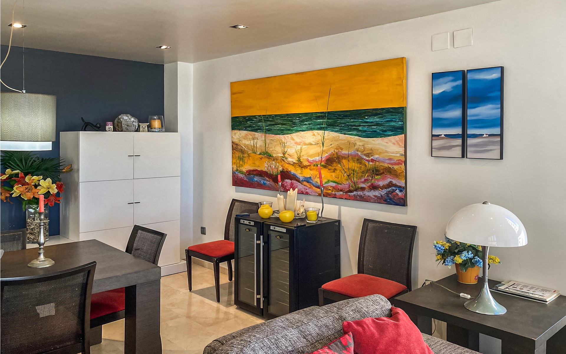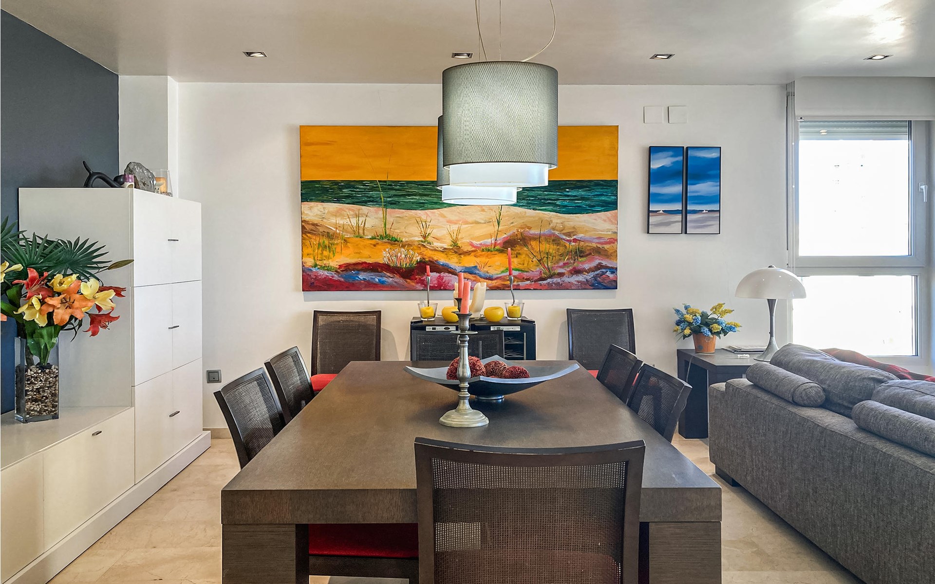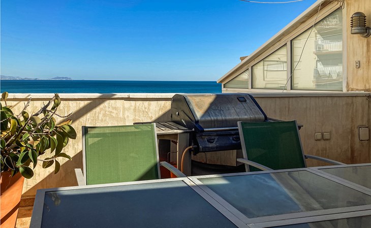 Deze ruime vakantiewoning op de bovenste verdiepingen van een appartementencomplex verwelkomt je direct aan het strand. De smaakvolle inrichting en de grote ramen vullen niet alleen de kamers met natuurlijk licht, maar zorgen er ook voor dat je op de bank kunt zitten met uitzicht op het strand en de zee of over de zee kunt uitkijken terwijl je barbecuet op het dakterras. Ontspan in het bubbelbad of maak gebruik van het gemeenschappelijke zwembad, waar je 's ochtends je eerste baantjes kunt trekken terwijl je geliefden nog slapen of het ontbijt voorbereiden. Ook aan sport geen gebrek, want je kunt paddle-tennis spelen voordat je naar het strand gaat.