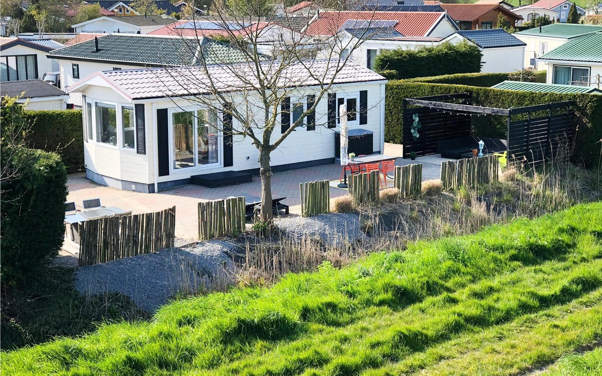 Dit gezellige en netjes ingerichte vakantiehuis in Sint-Annaland ligt direct aan de dijk. Het huis in het uitnodigende vakantiecomplex heeft een groot terras met tuinmeubelen in een mooie zithoek. Binnen vindt u een gezellige woonkamer, een open keuken, een apart toilet, een slaapkamer en een badkamer met wastafel en massagedouche. De woonkamer heeft Smart TV en een comfortabele slaapbank (200 x 140 cm). Via de trap op de dijk, op slechts 50 m van het vakantiehuis, bereikt u het zandstrand aan de Oosterschelde. Dit vakantiehuis in de provincie Zeeland is dus zeer geschikt voor een strandvakantie met familie en vrienden.