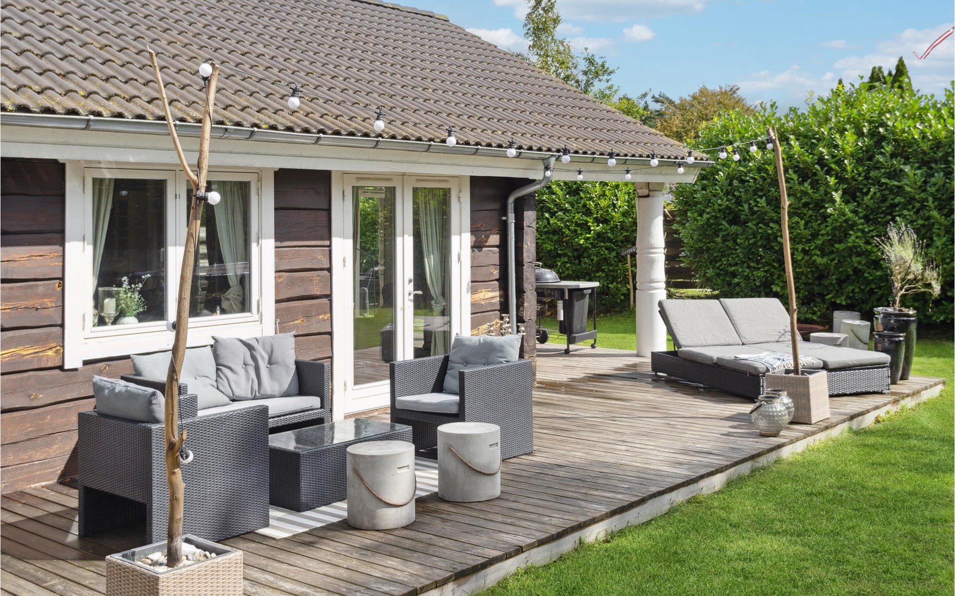 Ook buiten heeft dit huis veel te bieden. Laat je kinderen rondrennen op het ruime terrein en zie ze tot grote hoogte springen op de trampoline terwijl jij geniet van het zonnebaden op het terras. Verzamel later de hele familie voor een heerlijke maaltijd op de barbecue of sluit de dag samen af rond het kampvuur.