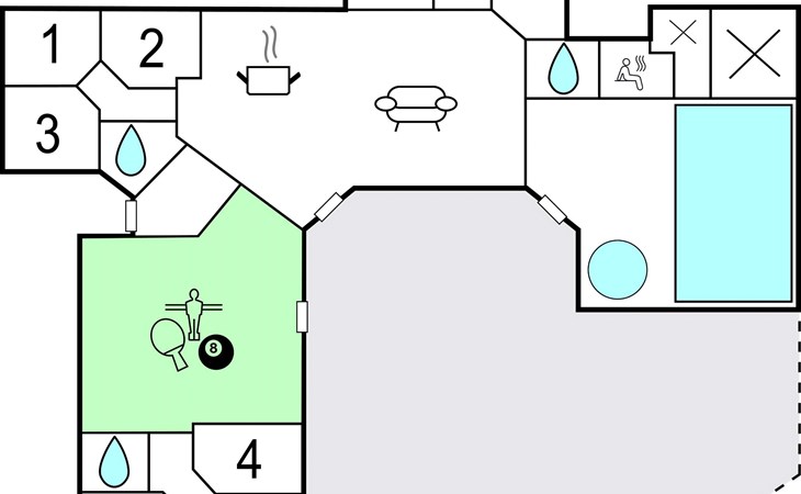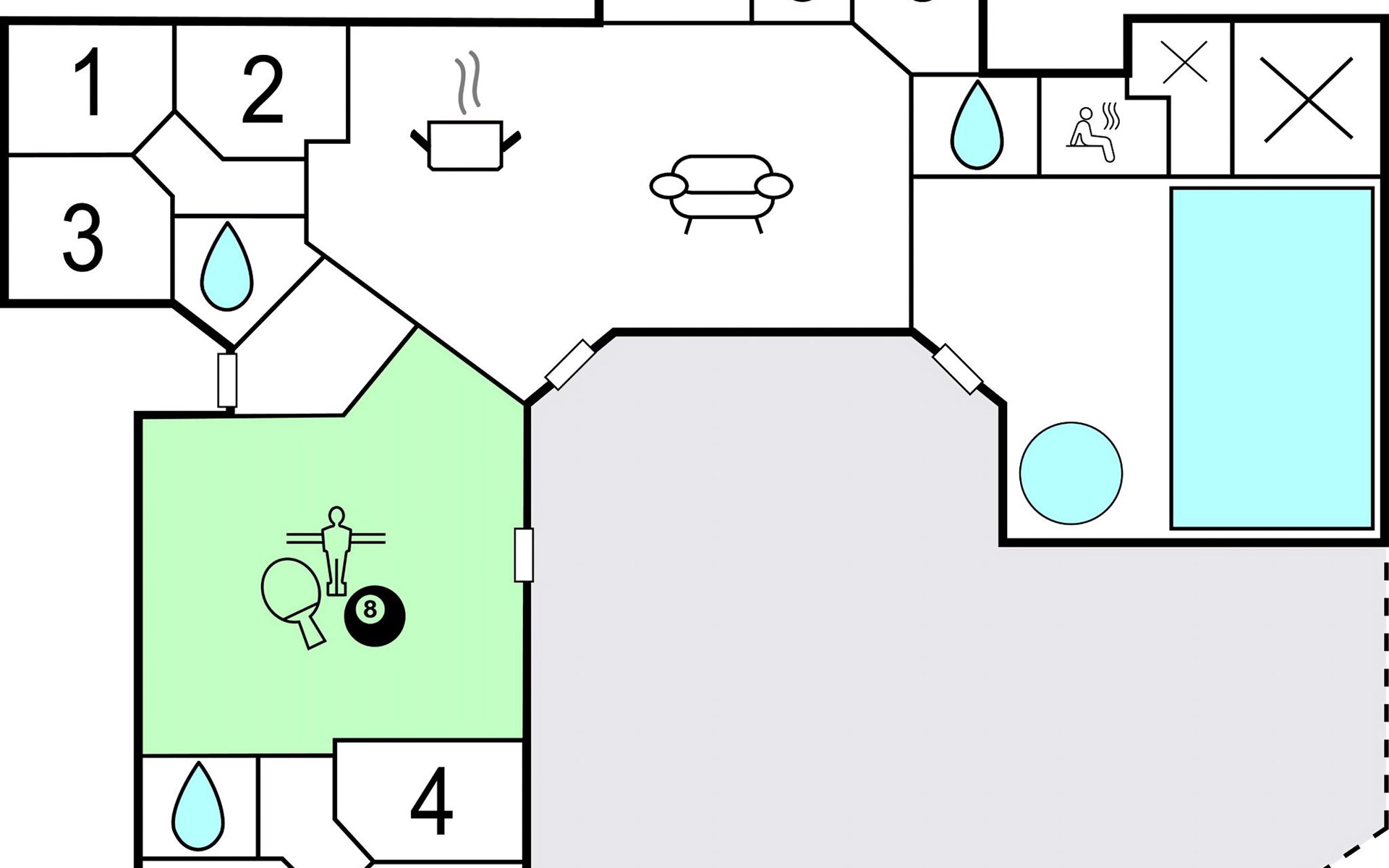 U bent hier op vakantie op een steenworp afstand van het brede en kindvriendelijke zandstrand. Het zwemwater is zuiver en u kunt heerlijk ontspannen tussen de duintjes. Het huis voor 22 personen is echt groot. Vooral het zwembad van 22 m² zal iedereen bekoren. Er is een glijbaan in. Er is ook een whirlpool voor 4 personen en een sauna. In het huis kunt u biljarten, air hockey en tafelvoetbal spelen. U zult ook ontspannen in 8 slaapkamers, 2 slaapzolders en 4 badkamers, evenals op het heerlijke zonneterras. Marielyst is een vakantieoord dat niets te wensen overlaat: veel gezinsvriendelijke activiteiten, attracties voor alle smaken, winkels voor eten, kleding, kunst, etc., uitstekende restaurants en een bruisend nachtleven. Bovendien is de stad omgeven door een prachtig bos en een vogelreservaat. Falster is ook populair bij amateurvissers, met goede visgronden aan de Oostzeekust en in Guldborgsund.