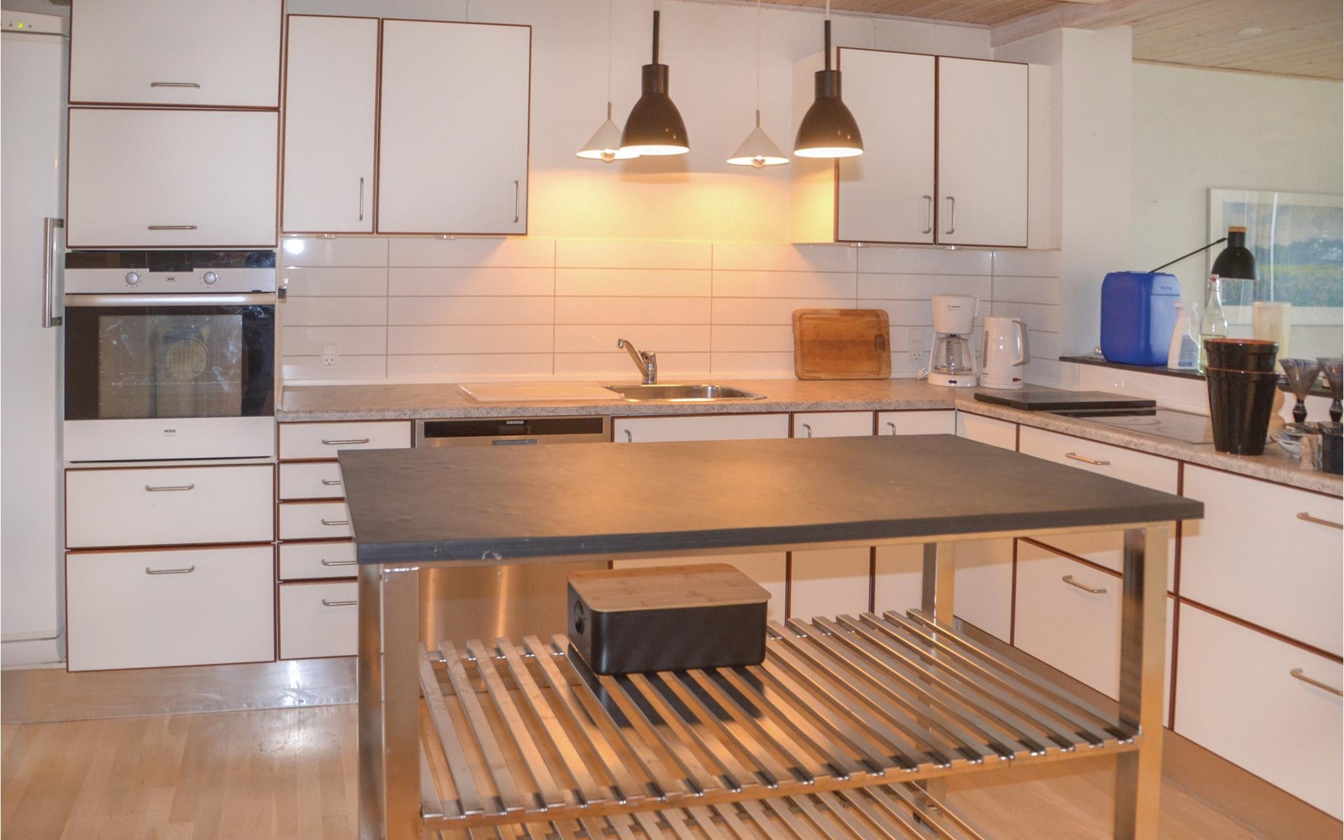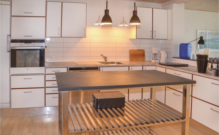 Hier kunnen vakantiegasten een mooi en goed gelegen vakantiehuis in Nr. Nebel verwachten. Het ligt op loopafstand van het centrum met goede winkelmogelijkheden, een overdekt zwembad en een fitnesscentrum. Het huis heeft drie verdiepingen, binnen vindt u een keuken-woonkamer met uitzicht op weilanden en velden. Vanaf de 1e verdieping heeft u toegang tot het ongestoorde dakterras. De woning is omheind en daardoor ook geschikt voor huisdieren. Het vogelreservaat Tipperne, Skjern Enge en natuurpark Filsø zijn gemakkelijk en snel bereikbaar met de auto. Bezoek ook de fascinerende Blåbjerg Plantage med ongelooflijk mooie natuur en gemarkeerde fiets- en wandelpaden. Het avonturenzwembad Seawest ligt op 3 km van het vakantiehuis.