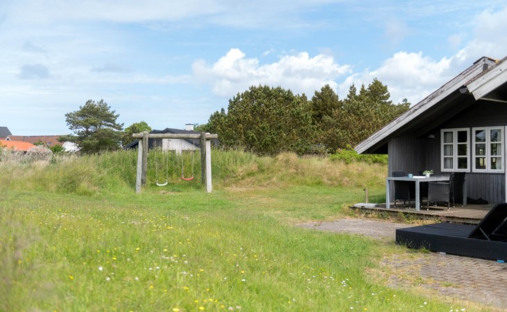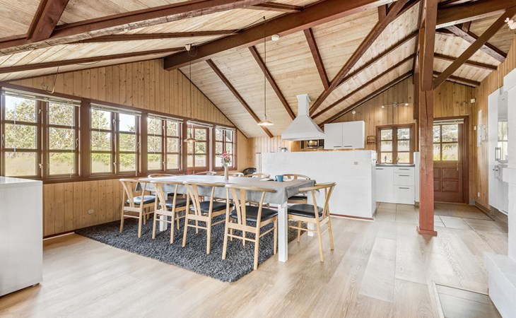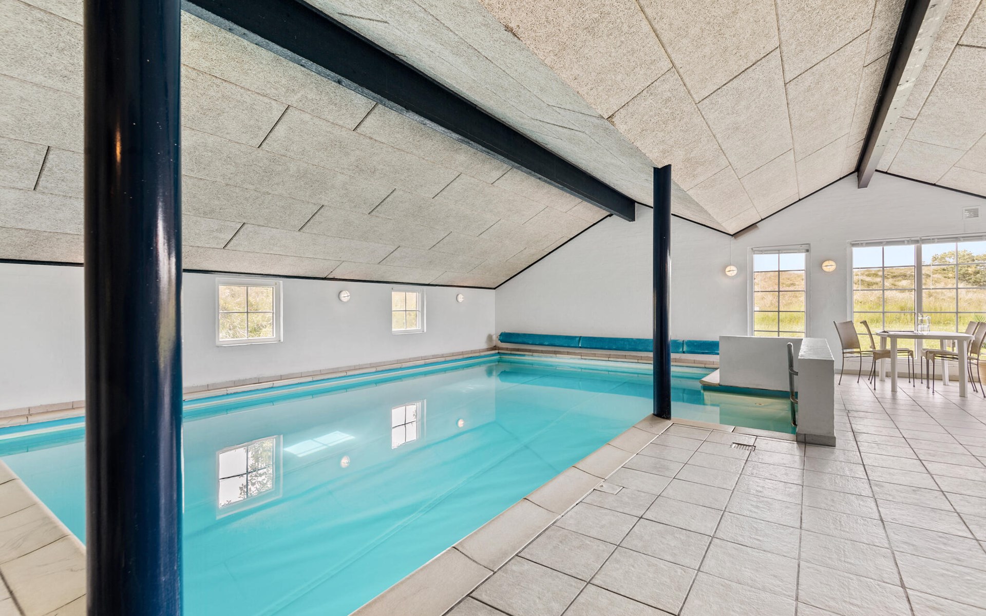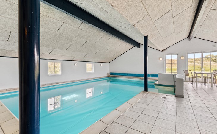 Centraal gelegen in Blåvand, op een groot, deels heuvelachtig natuurgrondstuk, staat dit mooie vakantiehuis, op slechts 1300 m van de Noordzee. Het huis werd in 1992 gemoderniseerd en beschikt over alle denkbare comfort, bijv. een zwembad van 40 m² met tegenstroominstallatie. Het zwembad heeft ook lichte stenen muren, klinkervloeren en een grote whirlpool voor 5 personen, sauna en apart toilet en douche. Een grote extra badkamer met vloerverwarming maakt deel uit van het huis. De lichte keuken is gecombineerd met de woonkamer en is gezellig, licht gebeitste muren, parketvloeren en tapijten. De grote ramen laten u uitkijken op het terrein, waar ook het gedeeltelijk open terras op u wacht. Hier bent u midden in de natuur en toch niet ver van de stad.