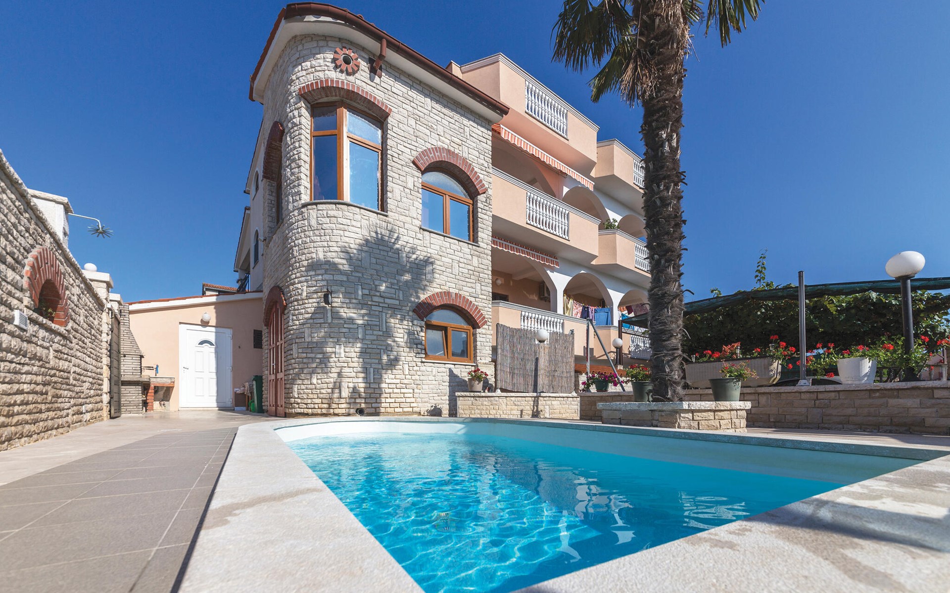 Deze gezellige vakantiewoning in de historische stad Pula is ideaal voor je zomervakantie aan de Adriatische Zee. De praktische inrichting biedt je alles wat je nodig hebt voor een zorgeloze vakantie. Geniet van de warme zomerdagen bij het gemeenschappelijke zwembad en verfris jezelf na een dag vol avonturen. Begin de ochtend met een kopje koffie op je balkon of terras en plan je excursies in de omgeving. Een andere, grotere vakantiewoning bevindt zich in hetzelfde vakantiehuis en biedt je de mogelijkheid om samen te reizen met je grote familie of vrienden.