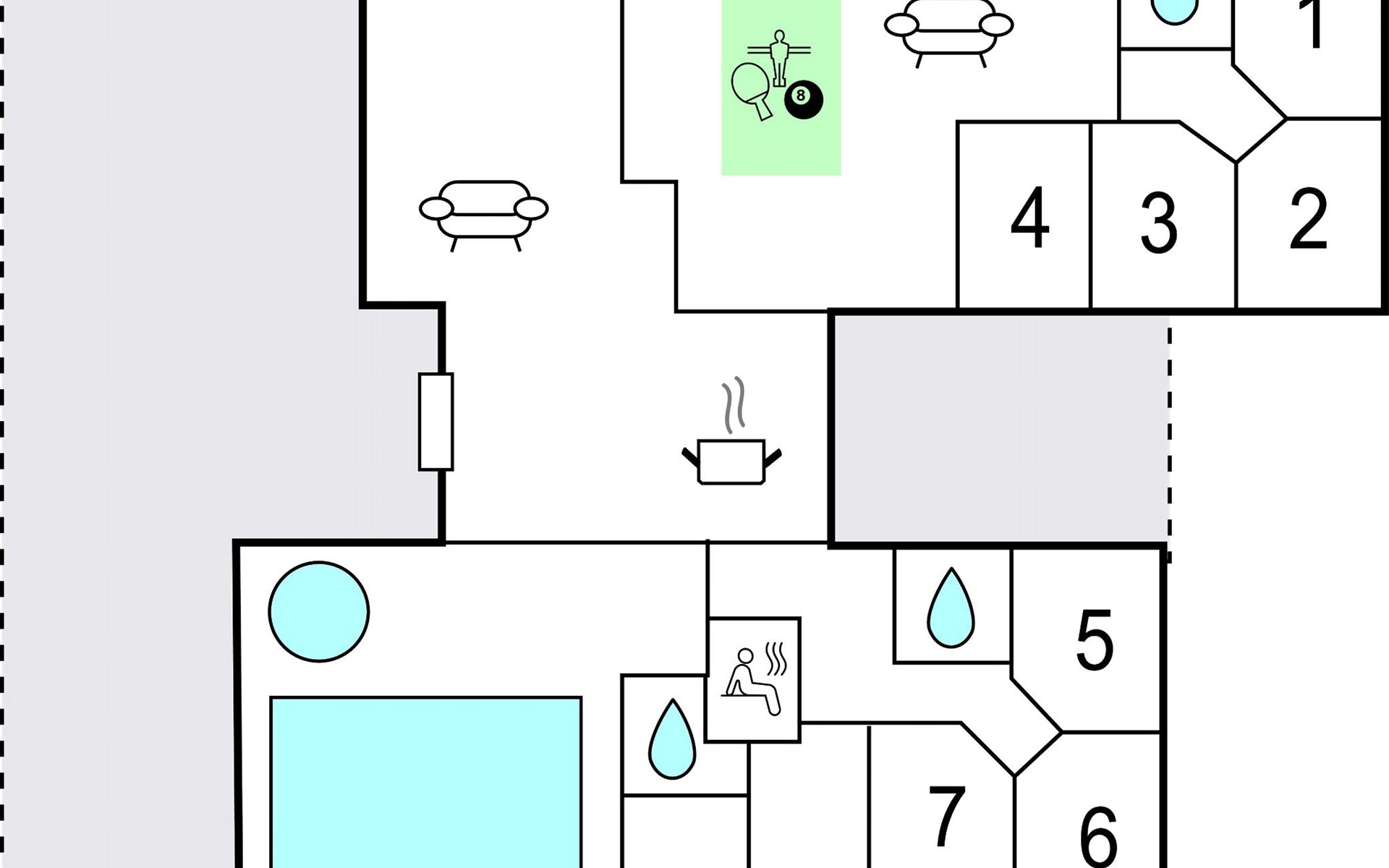 Interessant vakantiehuis met goede inrichting en leuke details. Het huis past goed bij een gezin. U kunt de kinderen laten rondrennen in de grote zwembadruimte. Er is ook een activiteitenruimte met tafeltennis, biljart en een kleine bar met koelkast. De grote zoom is zeker een hit bij uw kinderen. De keuken is zeer goed uitgerust en ruim bemeten met zijn 2 fornuizen en vaatwassers zoals ruime koelmogelijkheden. Het huis ligt in een prachtig natuurgebied en het zandstrand ligt op loopafstand. Het huis is ook perfect om te wandelen. Accommodatie en eindschoonmaak dienen in het huis betaald te worden samen met de overige verbruikskosten. Beddengoed, handdoeken, kinderbedje en stoel kunnen tegen betaling gehuurd worden bij het plaatselijke kantoor.