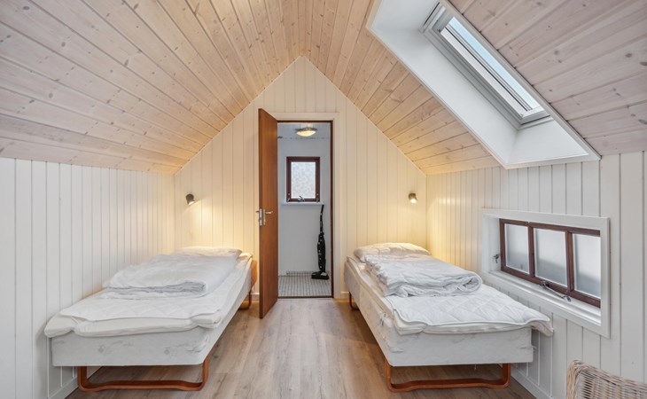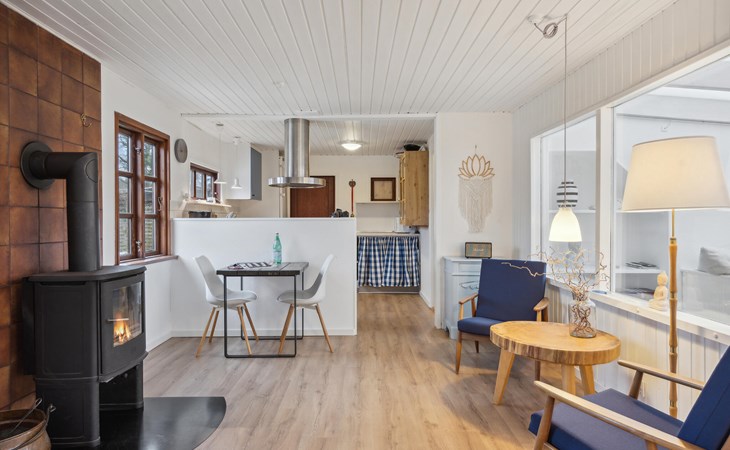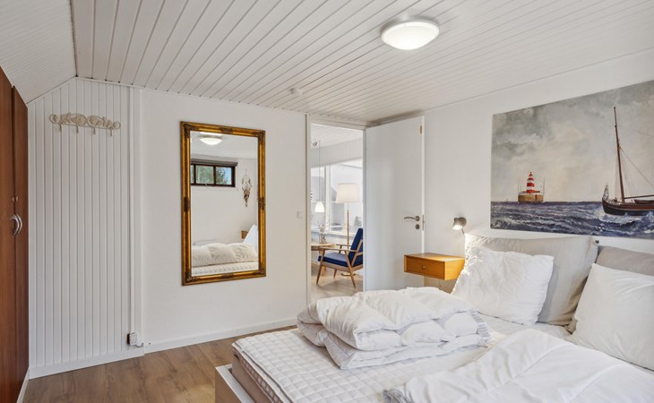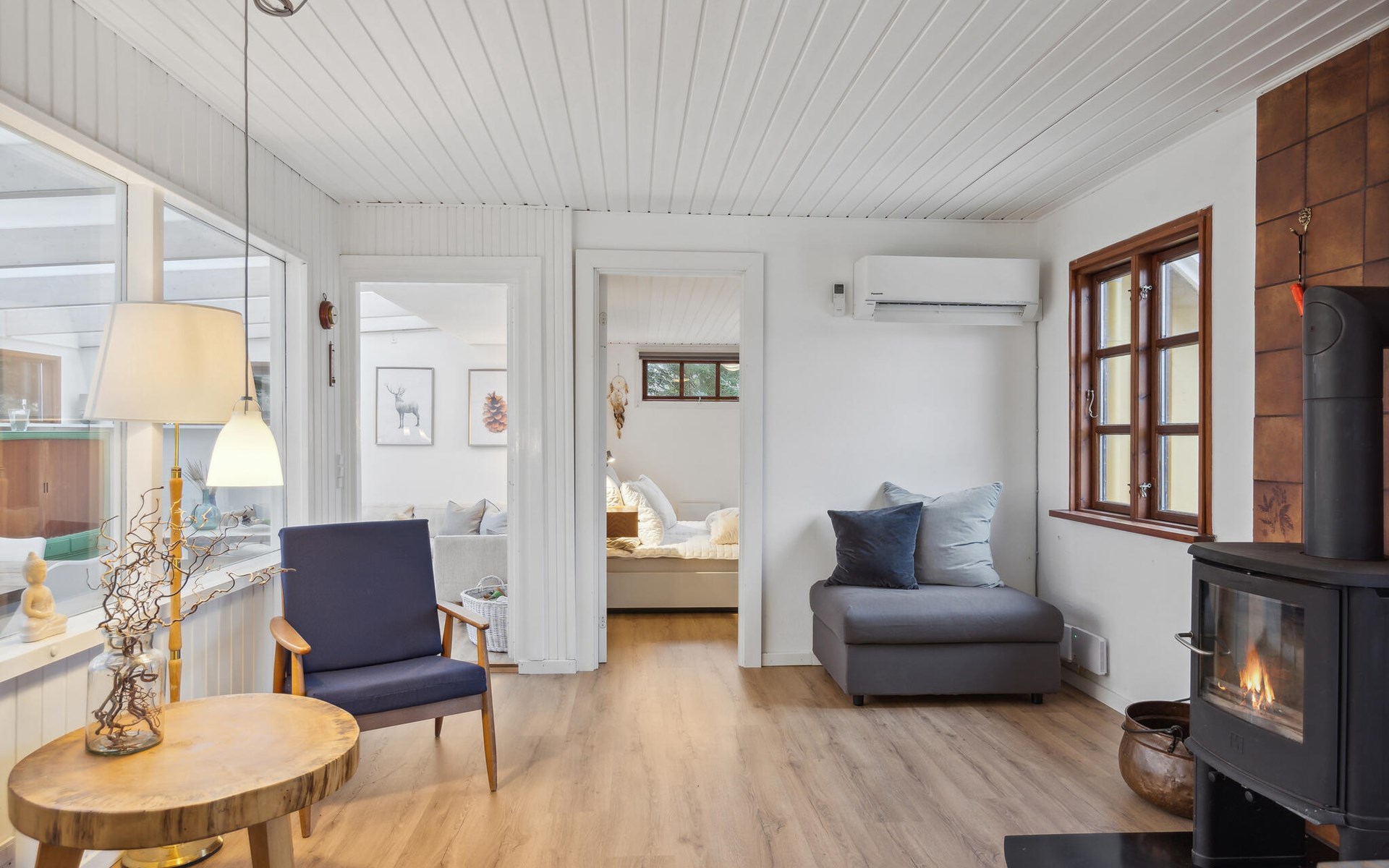 Je kunt het water snel bereiken via een privépad op het terrein, dat door de beschermde heide naar het witte zandstrand leidt. Het fijne, witte zand is een paradijs voor gezinnen en nodigt uit om zandkastelen te bouwen en te spelen. Het strand is waarschijnlijk een van de beste en meest kindvriendelijke stranden van Denemarken.