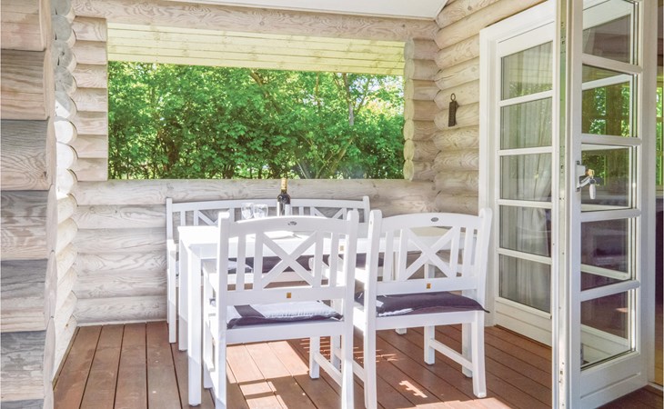 Aan een rustige doodlopende weg, in een aantrekkelijk vakantiegebied, ligt deze mooie blokhut.