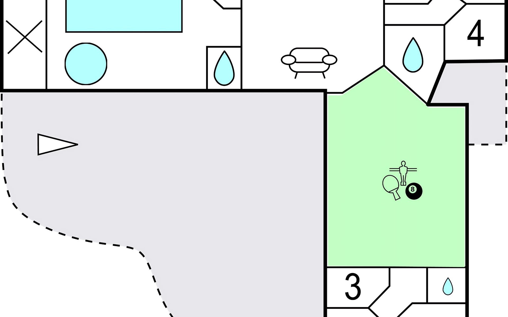 Een heerlijk huis met 6 slaapkamers en een vide. Dit huis heeft een kamer waar u elkaar kunt uitdagen met darts, tafeltennis en biljart. De kamer ligt naast de keuken-woonkamer, die netjes is ingericht. Verder is er een elegante biljartkamer in het huis met een aangebouwde sauna en een ruime whirlpool voor 6 personen. In het huis vindt u een inrichting die u het gevoel geeft dat u thuis bent gekomen. Sønderborg is niet ver weg en biedt goede winkels, een drukke haven met een aangename sfeer en de historische plaatsen Dybbøl Mølle en Skanderborg Castle. Vlakbij ligt het avonturenpark Universe, waar u vele uren vermaakt wordt door wetenschappelijke en technische fenomenen. Beddengoed, handdoeken, kinderbed en kinderstoel kunnen gehuurd worden tegen de catalogusprijzen van NOVASOL. De aanbetaling voor de lopende kosten en de eindschoonmaak worden samen met de overige verbruikskosten contant in het huis betaald.