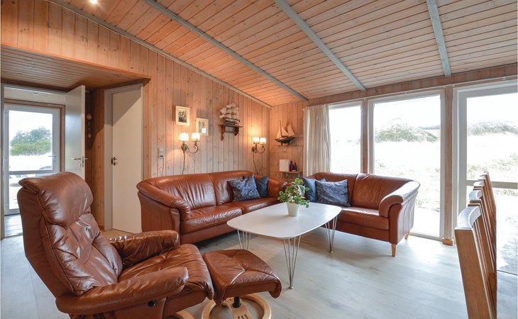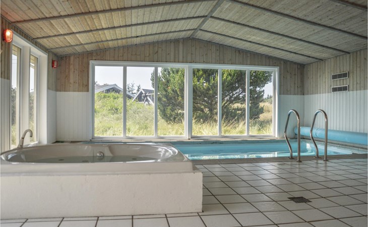 Dit ruime vakantiehuis ligt op een 2000 m2 groot heuvelachtig duingrondstuk in een aantrekkelijk vakantiegebied tussen de zee en het fjord. Het is ingericht met een zwembadruimte met een zwembad van 18 m2, een whirlpool en een sauna. Daarnaast zijn er zes slaapkamers, twee grote badkamers en een lichte en open keuken/multifunctionele ruimte met toegang tot een prachtig terras waar u van de zon kunt genieten. Het huis ligt dicht bij vele spannende activiteiten, waaronder windsurfen, een waterskibaan, goede vismogelijkheden, een golfbaan en een activiteiten- en bowlingcentrum.