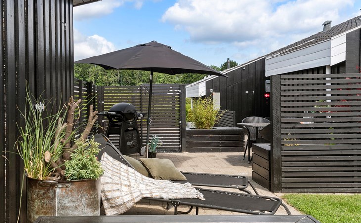 Op het open terras kun je volop genieten van de zon, barbecueën en ontspannen op comfortabele ligstoelen.