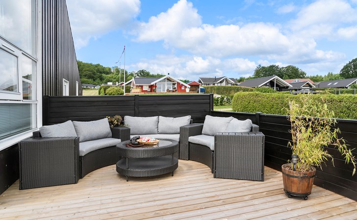 Een korte wandeling brengt je naar de zee. Geniet van lange wandelingen en zwemplezier in de zomer, en je kunt ook gaan vissen in de buurt van het huis. Kolding met zijn verschillende winkels en bezienswaardigheden ligt op slechts een klein eindje rijden.
