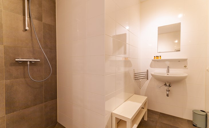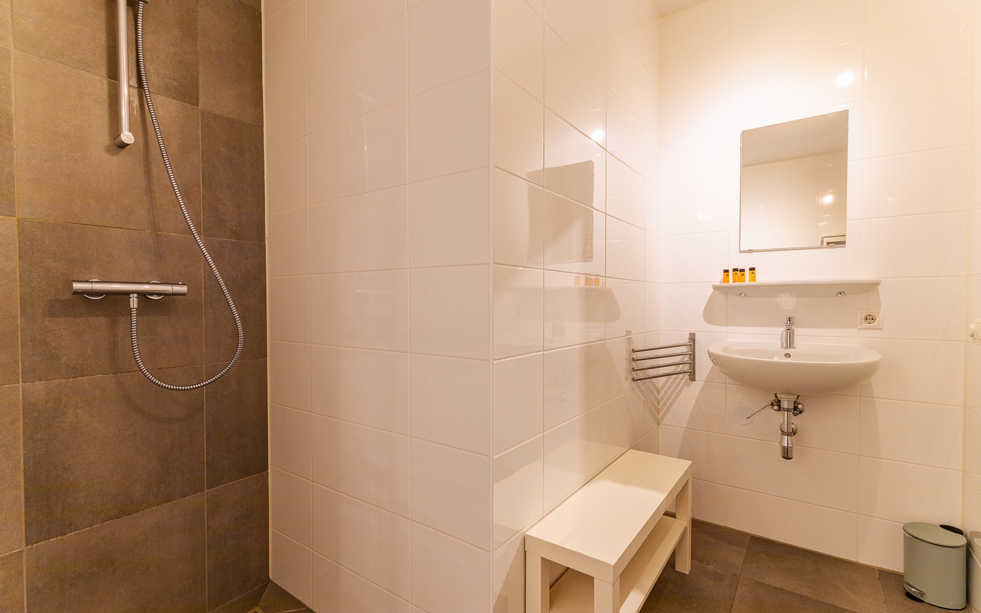 - Dusche ohne Vorhang/Duschhabine --> gut! Auch gut zu reinigen.