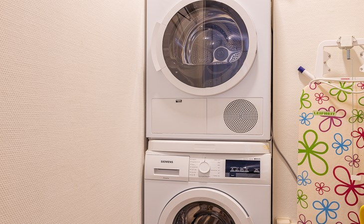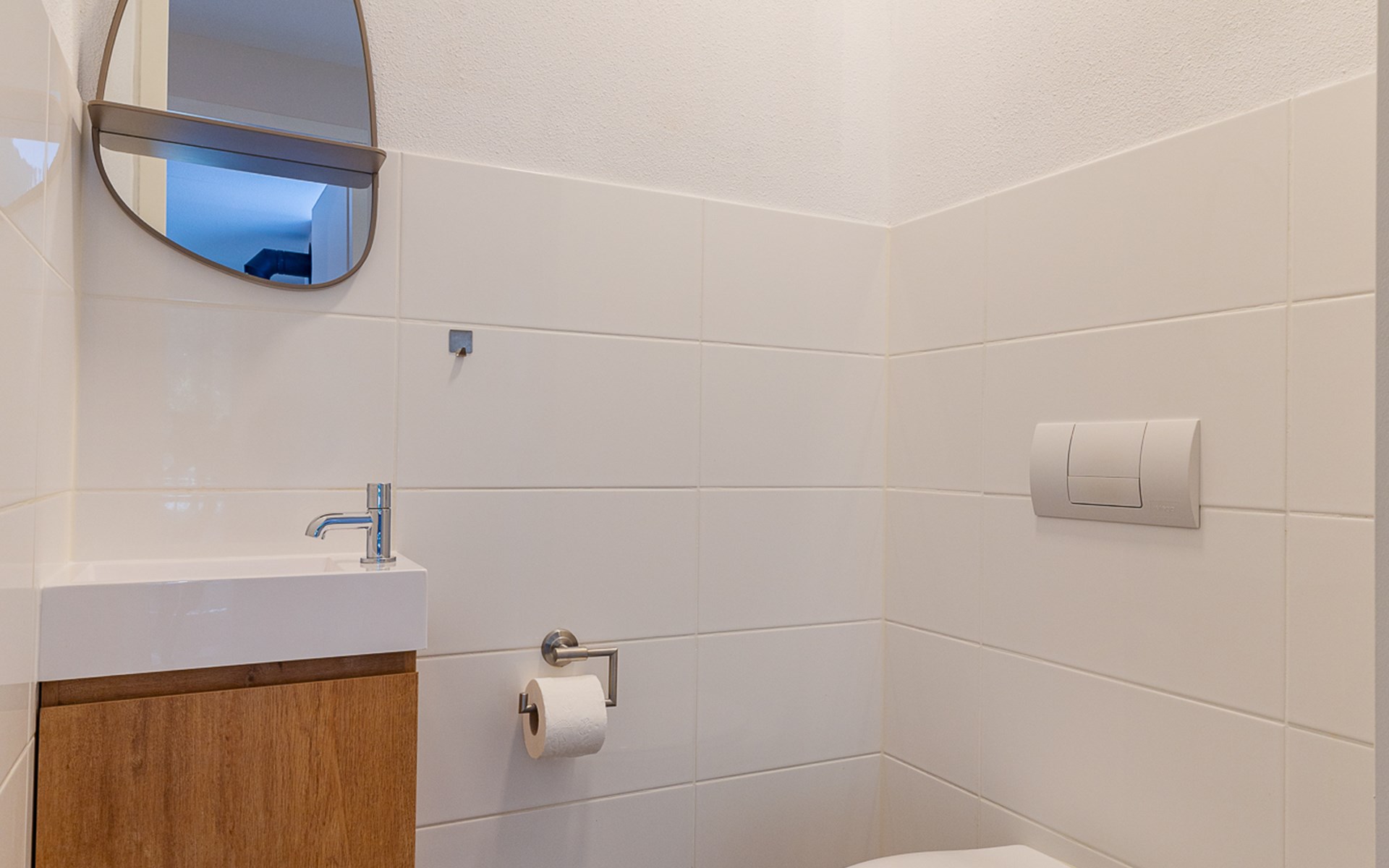 Appartement 13M is verdeeld over twee verdiepingen en telt een totale woonoppervlakte van circa 153 m² inclusief terrassen. Bij binnenkomst kom je in een ruime hal met een apart toilet en een aangrenzende technische ruimte met een wasmachine en droger.