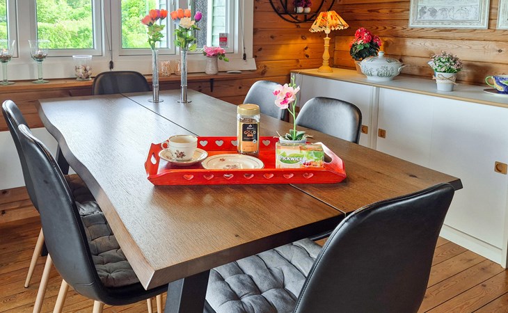 Verheug u op een verblijf in dit vakantiehuis in een prachtige omgeving niet ver van het fjord. Het huis is licht en zeer mooi ingericht met houten lambrisering op de muren en het plafond, en u kunt zich hier helemaal thuis voelen. In de woonkamer kunt u samen eten aan de eettafel met uitzicht op het kleine landgoed of 's avonds spelletjes spelen in de zithoek. Vanuit de woonkamer heeft u toegang tot het deels overdekte terras met uitzicht op het fjord en een barbecue, waar u bij zonnig weer lekker kunt ontbijten en 's avonds de dag kunt afsluiten.