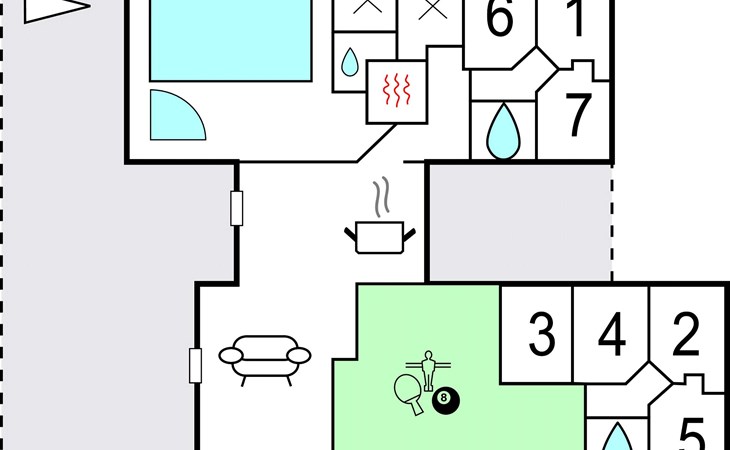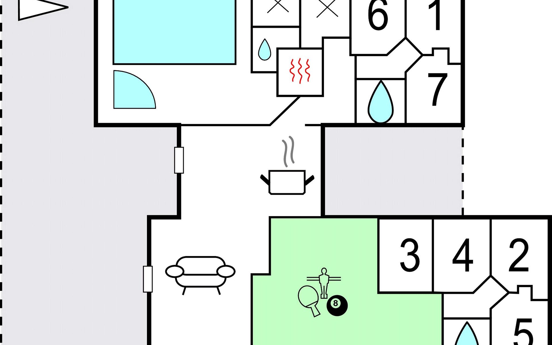 Het luxe vakantiehuis is ideaal voor een groot gezin of meerdere families. De tuin is omheind zodat kinderen en honden veilig en onbezorgd kunnen spelen. De comfortabele eetkeuken heeft een bankgroep, tv en een lange eettafel met zitplaatsen voor iedereen. Knus bij de houtkachel op kille avonden en bereid heerlijke maaltijden in de stijlvolle keuken. Daag elkaar uit voor een potje pool, tafeltennis of tafelvoetbal in de activiteitenruimte, terwijl toeschouwers genieten van een koel drankje aan de huisbar. Het hotel heeft een eigen wellnessruimte met verwarmd zwembad, waterglijbaan en tegenstroomsysteem. Je kunt ook ontspannen in de whirlpool en genieten van de warmte van de sauna.