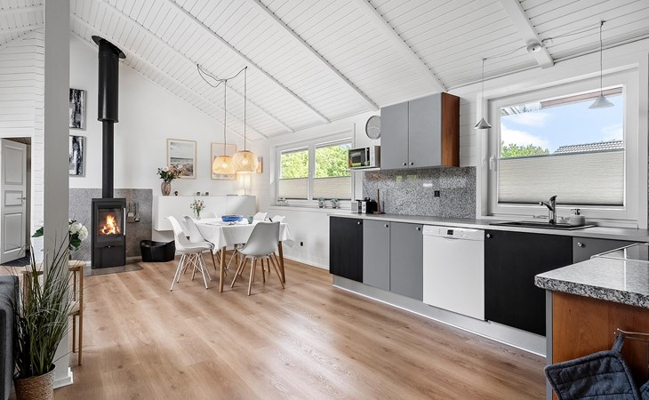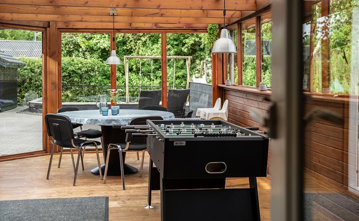 Je vakantiehuis in Bork Havn biedt ruime binnen- en buitenruimtes die ideaal zijn voor gezinnen of groepen. De ruime serre nodigt uit tot gezellige uurtjes, ongeacht het weer. Bereid heerlijke maaltijden in de moderne, open keuken en geniet samen van de maaltijden in de stijlvol ingerichte eethoek. De tafelvoetbaltafel belooft uren speelplezier met het hele gezin. In de koelere maanden van het jaar zorgt de houtkachel voor warme momenten in de woonkamer.